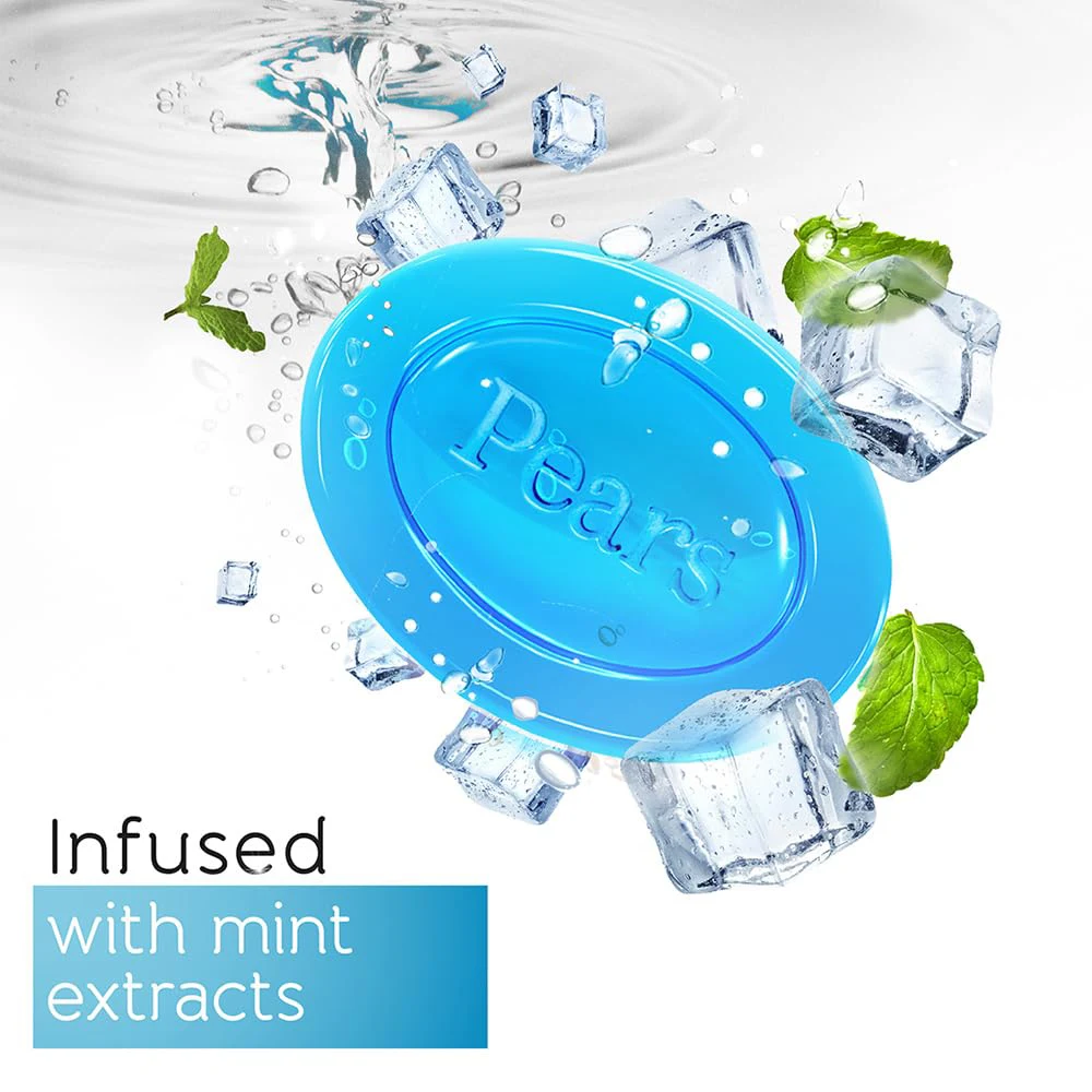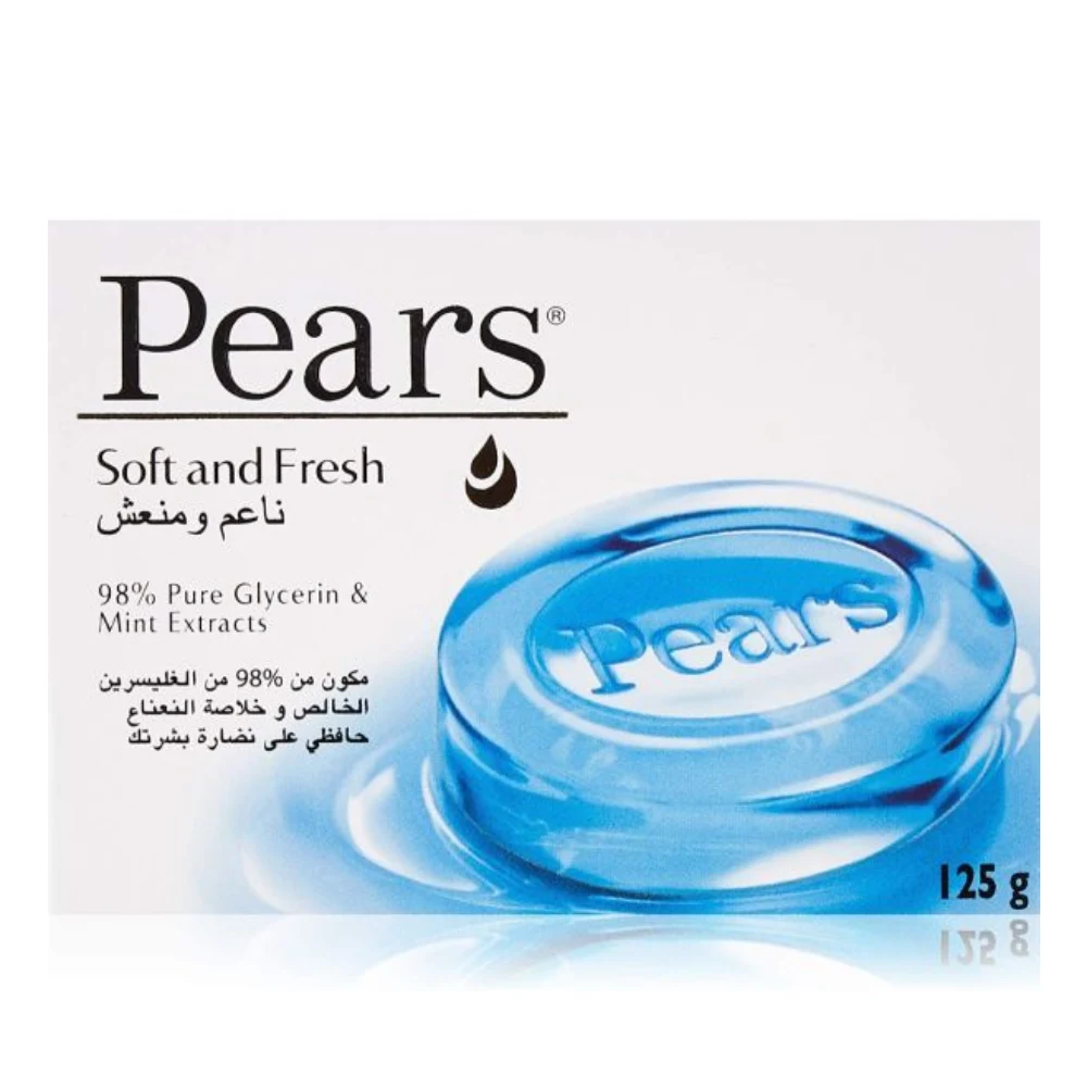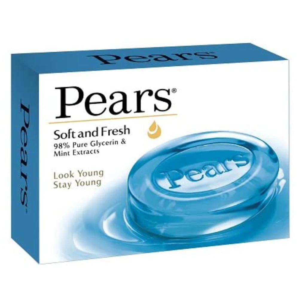 PEARS SOFT AND FRESH 98% PURE GLYCERIN AND MINT EXTRACTS BATH SOAP Pears Soft and Fresh Bath Soap is formulated with 98% pure glycerin and mint extracts, designed to provide a refreshing and moisturizing experience. Here are some key features: Key Ingredients: 98% Pure Glycerin: Known for its excellent moisturizing properties, glycerin helps to hydrate the skin and maintain its natural moisture balance. Mint Extracts: Adds a cooling sensation and a fresh aroma, invigorating your bathing experience. Benefits: Moisturizing: Helps to keep the skin soft and hydrated, making it suitable for various skin types. Refreshing: The mint extracts provide a refreshing and energizing feel, perfect for a revitalizing shower. Gentle Formula: Designed to be mild on the skin, it cleanses without causing dryness. Use: Ideal for daily use, this soap can be used on both the body and face, leaving skin feeling fresh, soft, and revitalized.