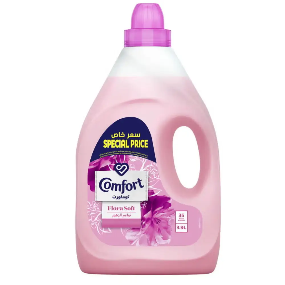 COMFORT FLORA SOFT FABRIC SOFTENER 4 L & COMFORT ULTIMATE CARE 650 ML Comfort Flora Soft Fabric Softener (4L) Key Features: Delicate Floral Fragrance: Infused with a light and fresh floral scent that keeps laundry smelling wonderful. Large Capacity: The 4L size is perfect for families or frequent laundry needs, providing great value. Softening Benefits: Helps to soften fabrics, making them comfortable against the skin. Static Reduction: Minimizes static cling, making clothes easier to handle. Usage: Washing Machine: Add to the fabric softener compartment during the rinse cycle. Hand Washing: Dilute in water and add during the final rinse for best results. Comfort Ultimate Care (650 ml) Key Features: Long-Lasting Fragrance: Offers a charming scent that lingers on clothes after washing. Enhanced Softness: Specifically designed to soften clothes while reducing wrinkles. Protective Care: Maintains the quality of fabrics, keeping them looking new longer.
