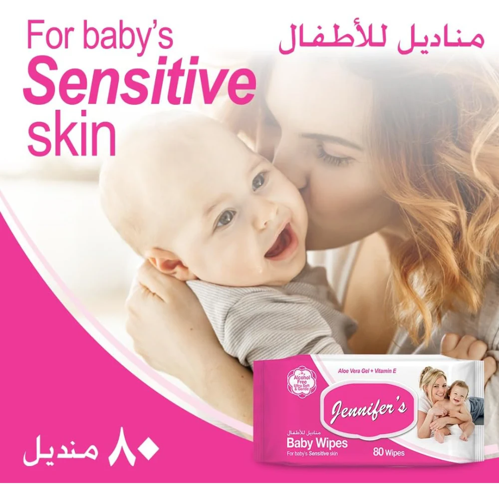 JENNIFERS BABY WIPES ( 80 + 80 + 80 ) Jennifer's Baby Wipes (80 + 80 + 80) offer a convenient and effective way to keep your little one clean and fresh. Here are some key features: Features Soft and Gentle: Made from soft materials that are gentle on a baby's sensitive skin. Moisturizing Formula: Often enriched with aloe vera or other soothing ingredients to prevent irritation and keep skin hydrated. Alcohol-Free: Typically free from harsh chemicals, making them safe for daily use. Uses Diaper Changes: Perfect for cleaning during diaper changes, helping to prevent rashes. General Clean-Up: Useful for wiping hands, face, and spills while on the go. Travel Friendly: Compact packaging makes them easy to carry in a diaper bag or purse. Benefits Convenient: Pre-moistened wipes save time and are easy to use. Versatile: Suitable for babies, but also great for adults or older children for quick clean-ups.