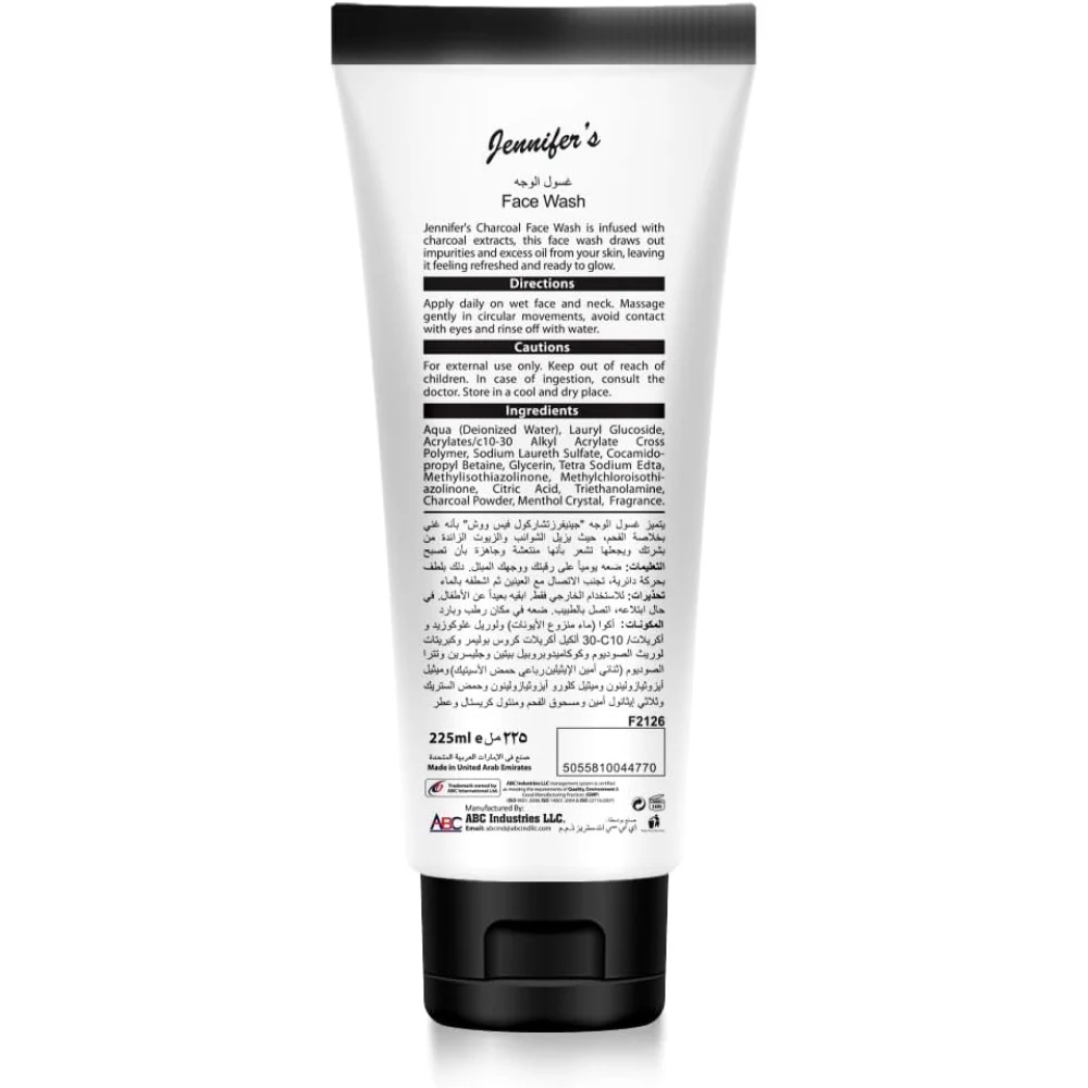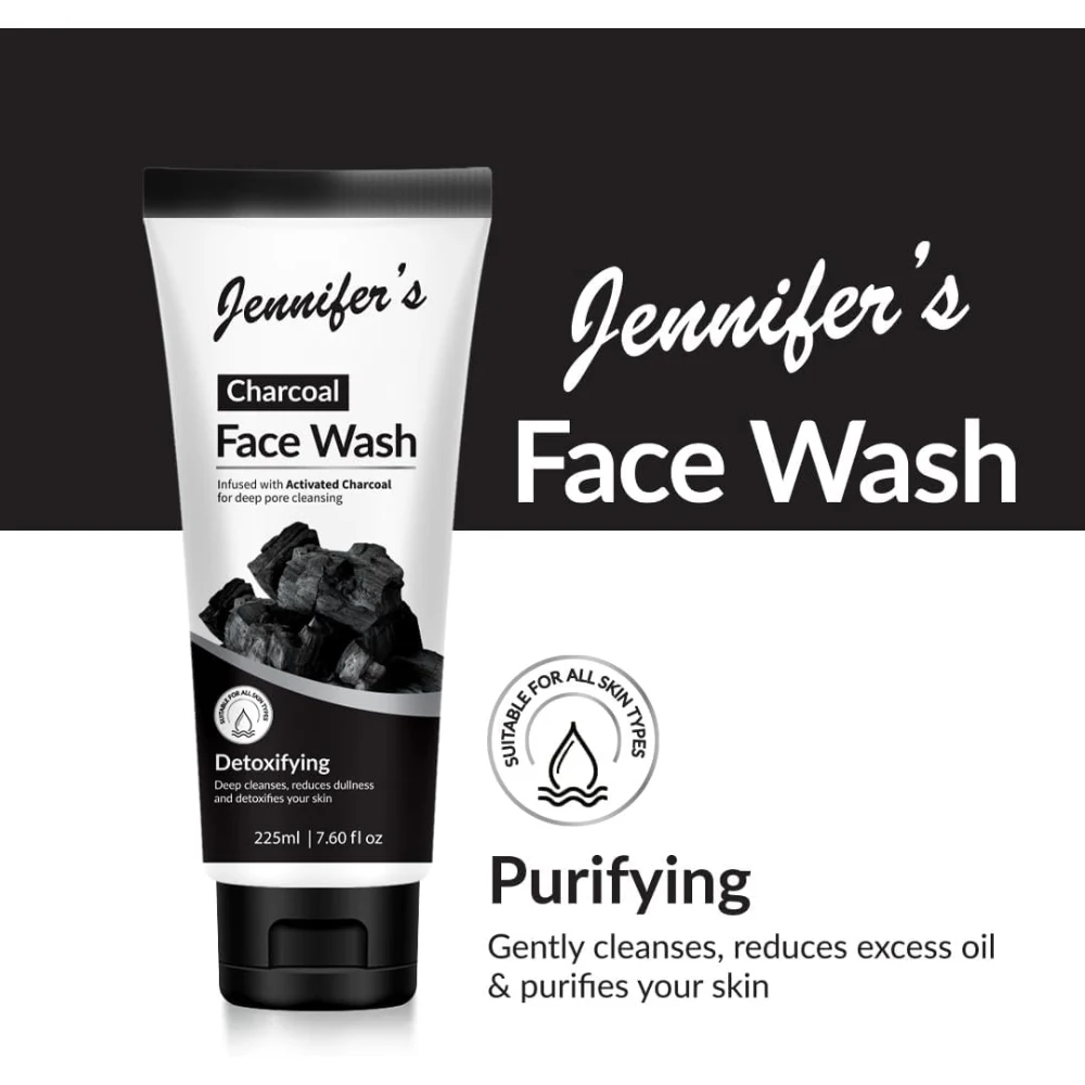 JENNIFERS CHARCOAL FACE WASH DETOXIFYING DEEP CLEANSES , REDUCES DULLNESS AND DETOXIFIES YOUR SKIN 225 ML Activated Charcoal: Known for its powerful absorbing properties, it helps draw out dirt, oil, and impurities from the skin. Natural Exfoliants: Often includes gentle exfoliating agents to help remove dead skin cells. Benefits: Deep Cleansing: Effectively removes excess oil, dirt, and impurities, providing a thorough cleanse. Detoxifying Effect: Charcoal helps detoxify the skin by unclogging pores and removing buildup, making it ideal for oily and congested skin types. Reduces Dullness: Regular use can promote a brighter and more radiant complexion by removing dead skin cells and impurities. Refreshing Feel: Leaves the skin feeling clean, fresh, and revitalized. Usage: Wet your face with water. Apply a small amount of the face wash and lather it in your palms. Gently massage it onto your face, focusing on areas prone to oiliness or congestion. Rinse thoroughly with water and pat dry.