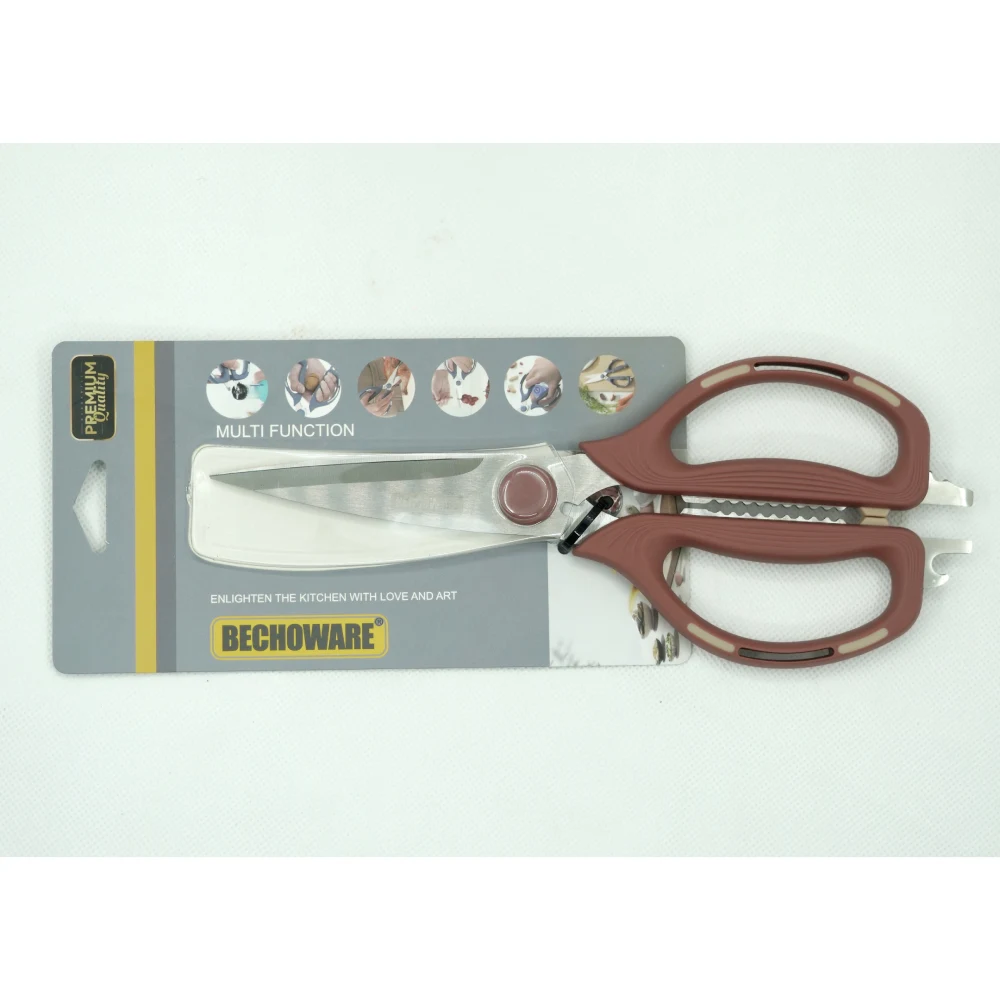 BECHOWARE STAINLESS STEEL KITCHEN SCISSORS Bechoware stainless steel kitchen scissors are a versatile and essential tool for any kitchen. Crafted from high-quality stainless steel, these scissors are designed for durability, sharpness, and resistance to rust and corrosion. Their sturdy construction ensures they can handle a variety of tasks, from cutting herbs and poultry to opening packages. The ergonomic handles provide a comfortable grip, allowing for easy use and control during meal prep. Many models also feature additional functionalities, such as built-in bottle openers or nutcrackers, enhancing their versatility. With their sleek design and reliable performance, Bechoware stainless steel kitchen scissors make food preparation more efficient and convenient, making them a must-have in any culinary setting.