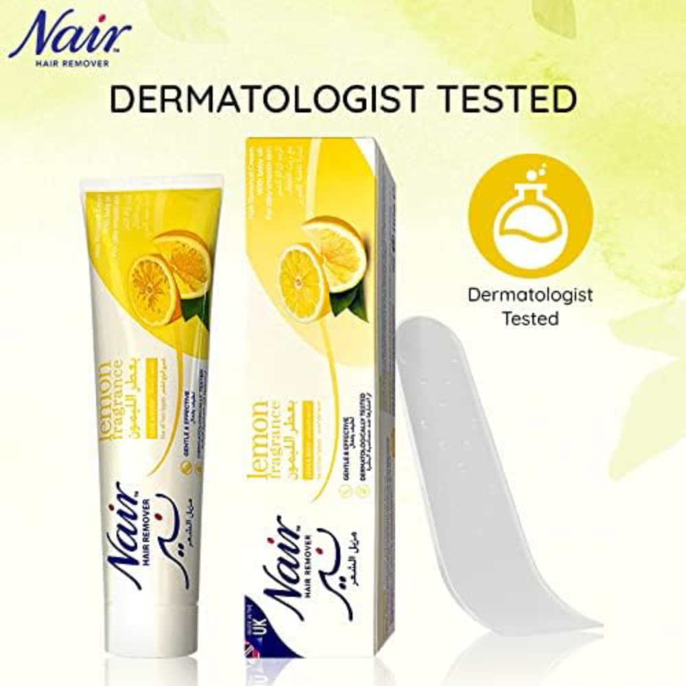 NAIR HAIR REMOVER CREAM LEMON FRAGRANCE 110G Nair Lemon Hair Removal Cream is enriched with moisturizing baby oil, effectively removing unwanted stubble and revealing smooth, silky skin. It leaves your skin feeling soft for up to 7 days.