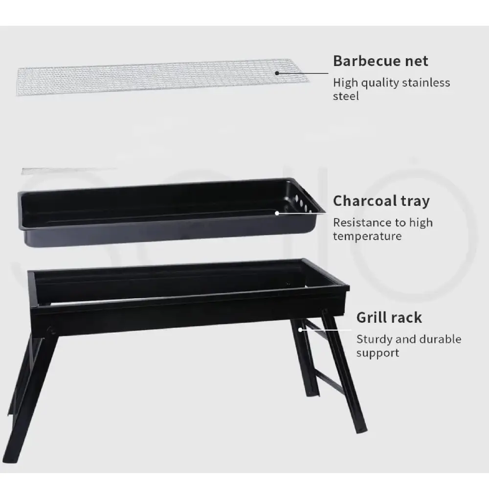 PORTABLE BARBEQUE BBQ PITS JLZ 02 The Portable Barbecue BBQ Pit JLZ 02 is a compact and easy-to-use outdoor grilling device designed for cooking in various outdoor settings. Here’s a simple breakdown of its key features: Portable: Lightweight and easy to carry, perfect for camping, picnics, or tailgating. Fuel Type: Likely runs on charcoal or gas (check specific model for details). Compact Size: Ideal for small gatherings, offering enough space to cook food for a few people. Easy Setup: Simple to assemble and use, making it convenient for outdoor cooking. Durable Material: Built from heat-resistant metal, ensuring longevity and easy cleaning. This BBQ pit is designed for people who need a portable, efficient grilling solution for outdoor activities.