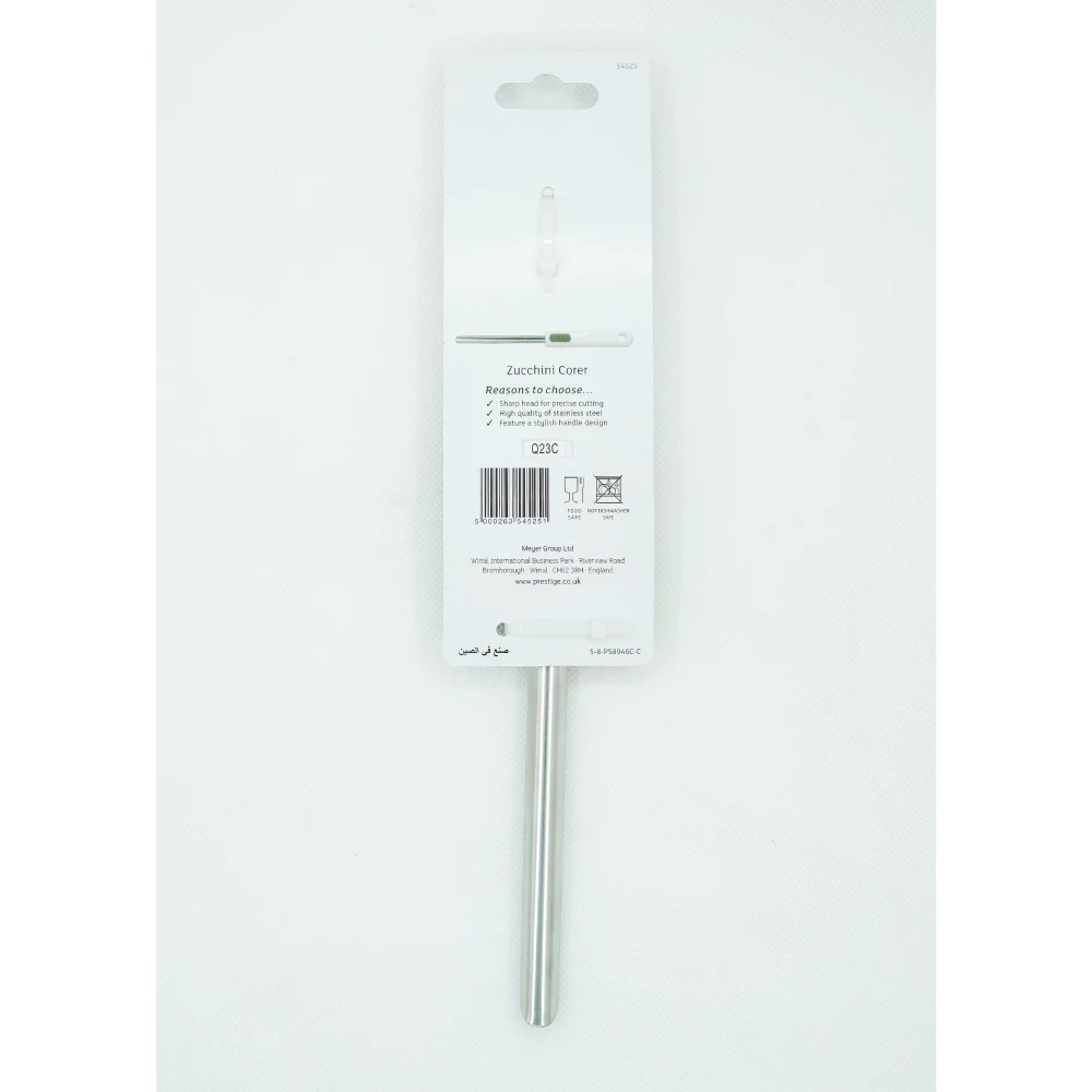 PRESTIGE BASICS ZUCCHINI CORER FOR FRUITS AND VEGETABLES The Prestige Basics Zucchini Corer is a handy kitchen tool designed specifically for hollowing out fruits and vegetables, particularly zucchinis. This corer features a sharp, stainless steel blade that easily removes the insides of zucchinis, cucumbers, and other similar produce, making it perfect for creating stuffed dishes or for preparing ingredients for salads and other recipes. Its ergonomic handle provides a comfortable grip, allowing for efficient and controlled use. The design often includes a smooth action that makes coring quick and effortless, reducing preparation time in the kitchen. Compact and easy to store, the Prestige Basics Zucchini Corer is a practical addition to any kitchen, especially for those who enjoy cooking with fresh vegetables. Whether you're making stuffed zucchini boats or simply preparing ingredients for a meal, this tool simplifies the process and enhances your culinary creativity!