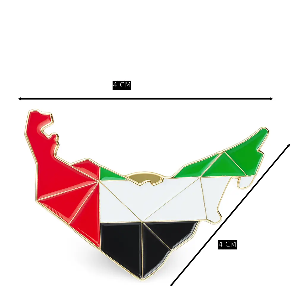 UAE NATIONAL DAY UAE MAP BADGE WITH MAGNET 4 CM X 4CM This badge is designed in the shape of the UAE map and features the national flag colors — red, green, white, and black — representing unity and pride. It is made for UAE National Day celebrations to honor the country’s formation and heritage. The badge includes a magnet on the back for easy attachment to clothing or display without using pins. Its 4 cm x 4 cm size makes it compact yet clearly visible. It symbolizes national identity, unity, and patriotism.