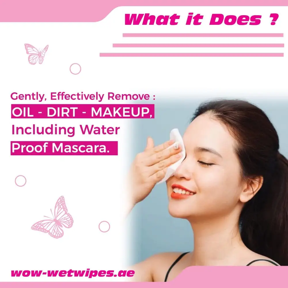 WOW FACIAL MAKEUP REMOVING WIPES FOR ALL SKIN TYPES - 25 WIPES Effective Makeup Removal: Gently removes all makeup, including waterproof mascara. Mild Fragrance: Light and refreshing scent that won't overwhelm the senses. Enriched with Skin-Loving Ingredients: Infused with Aloe, Chamomile Extract, and Vitamin E for hydration and soothing properties. pH Balanced: Designed to maintain your skin’s natural balance. Alcohol-Free & Paraben-Free: Safe for sensitive skin, providing a gentle clean without harsh chemicals.