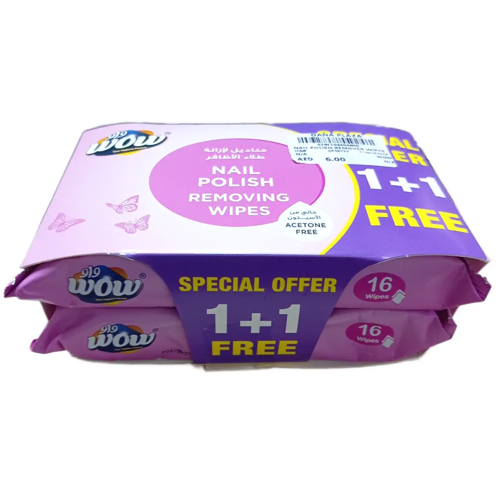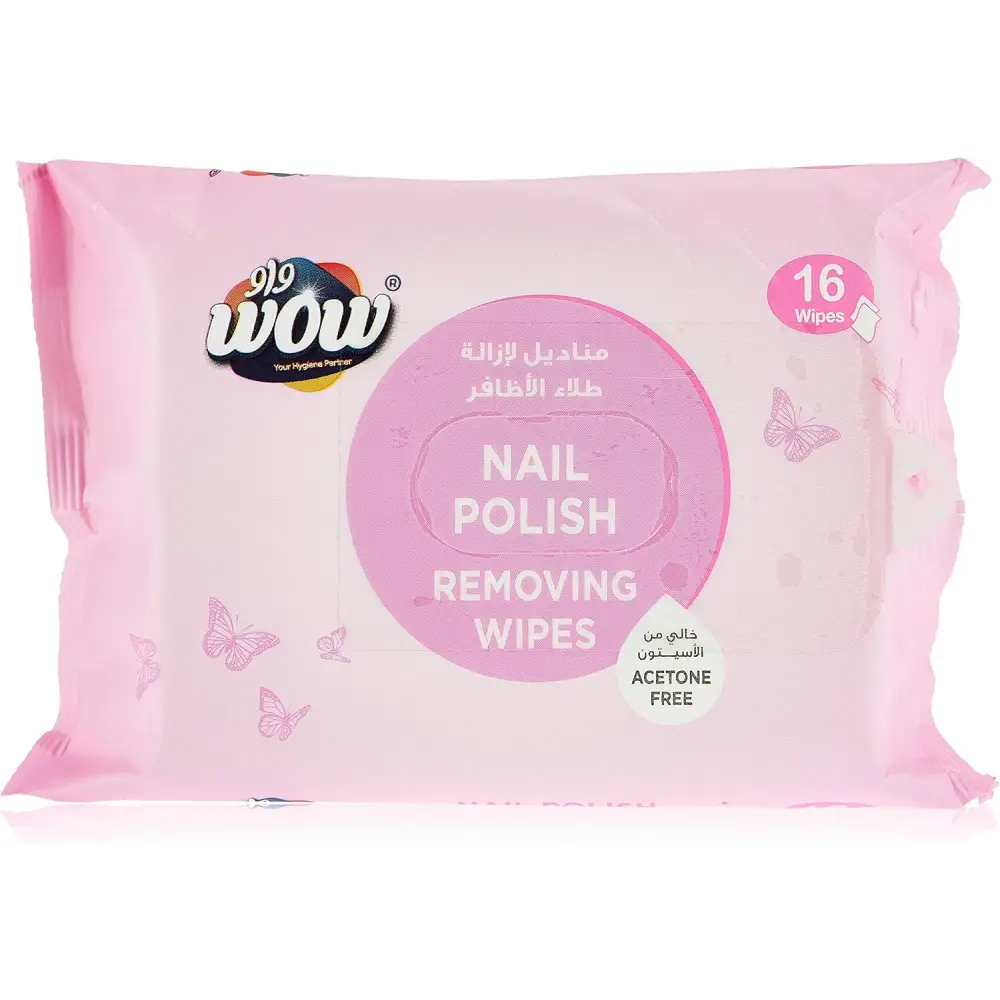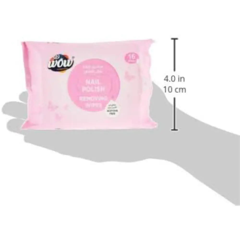 WOW NAIL POLISH REMOVING WIPES Wipes are acetone-free that easily removes nail polish Keeps your nail fresh and soft Instantly amplifies the nail's look with a dash of elegance Contours to the fingers without harming the surrounding skin Articulated for effortless adherence and removal