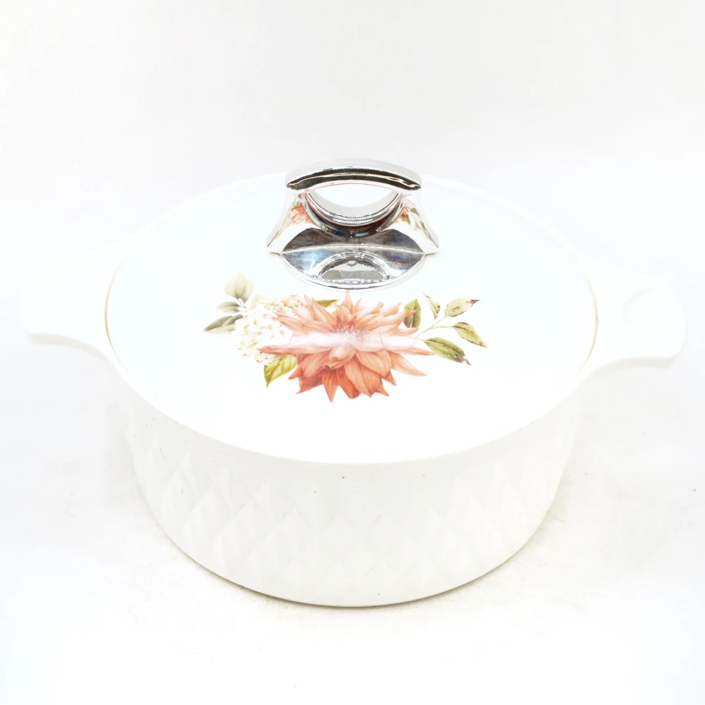 DIAMOND INSULATED HOT POT 3 SET The Diamond Insulated Hot Pot Set, typically consisting of three pots, is designed for keeping food hot for extended periods, making it ideal for serving meals at gatherings or during travel. Here are some common features you might expect: Insulation: Each pot usually has double-wall insulation to maintain temperature, ensuring that your dishes stay warm. Material: Often made from durable materials like stainless steel or high-quality plastic, which are both sturdy and easy to clean. Variety of Sizes: The set generally includes pots of different sizes, allowing you to serve a variety of dishes, from sides to main courses. Lids: Each pot typically comes with a matching lid to prevent spills and retain heat and moisture. Design: Usually designed to be both functional and aesthetically pleasing, making them suitable for table service. Handles: Often features comfortable, heat-resistant handles for easy handling and transport.