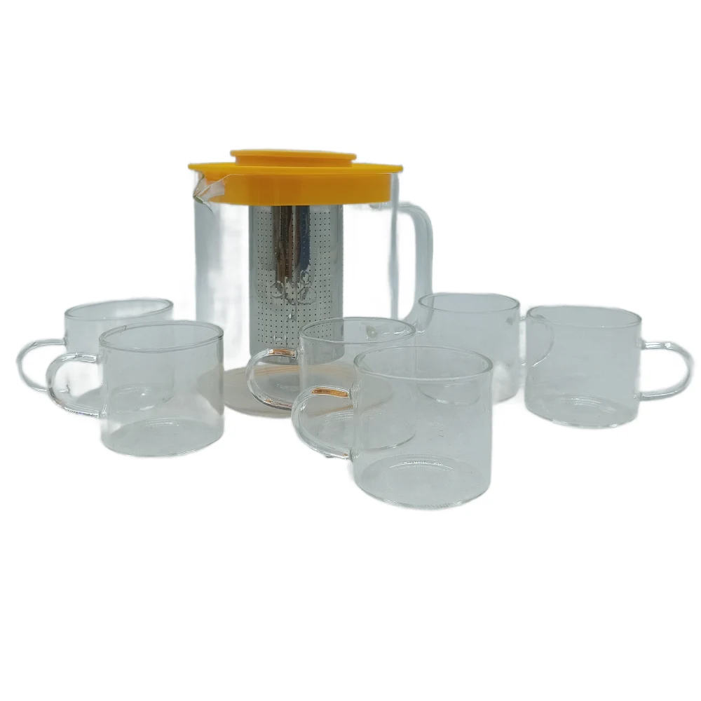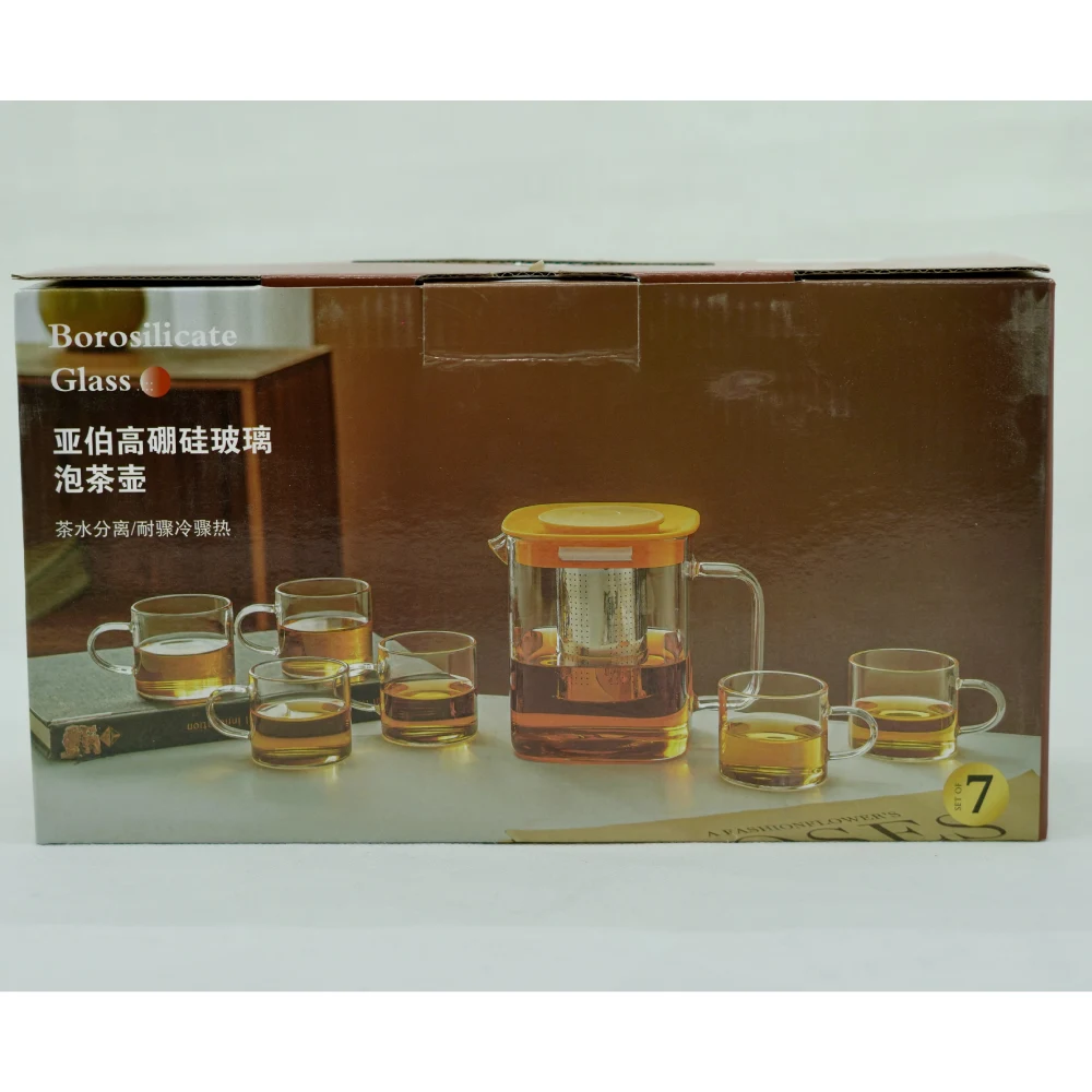 DP GLASSWARE TEA POT SET 7 PCS The DP Glassware Tea Pot Set (7 pieces) is an elegant and functional collection designed for tea lovers. Here’s an overview of its features, benefits, and usage tips: Key Features Complete Set: Includes a teapot and six matching cups, perfect for serving tea to family and friends. High-Quality Glass: Made from durable, heat-resistant glass that allows you to see the beautiful colors of your tea. Stylish Design: Often features an elegant design that adds a sophisticated touch to any tea party or gathering. Easy to Handle: The teapot typically includes a comfortable handle for easy pouring. Dishwasher Safe: Many sets are dishwasher-safe for easy cleaning, though hand washing is recommended for longevity. Benefits Perfect for Entertaining: Ideal for hosting tea parties, gatherings, or cozy afternoons with friends and family.