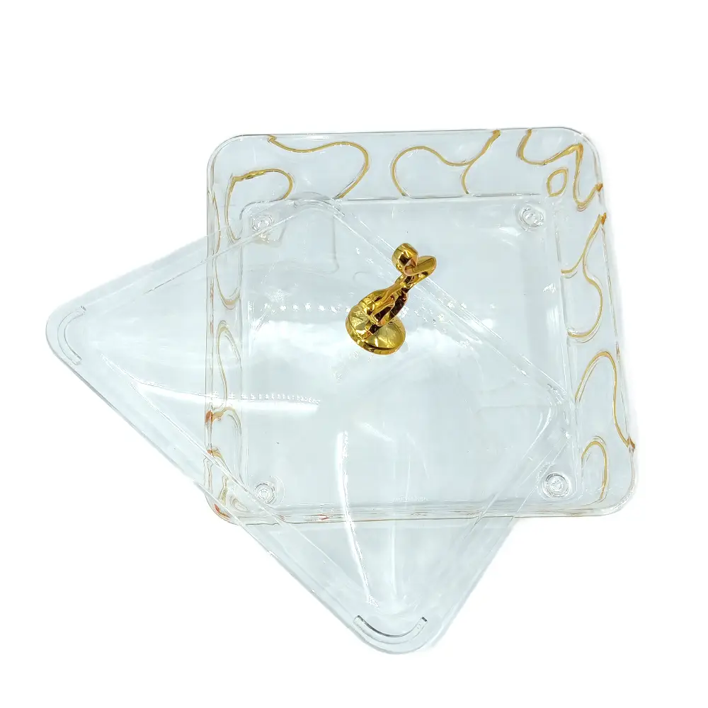FURSAN ACRYLIC SMALL SQUARE SERVING CANDY BOX WITH LID SQS-TPS The Fursan Acrylic Small Square Serving Candy Box with Lid (SQS-TPS) is a clear, small square-shaped container designed to store and display candies or small treats. Made from durable acrylic, it features a matching lid to keep the contents fresh and protected. Key Features: Material: Durable acrylic. Design: Small square shape with a lid. Function: Ideal for storing and displaying candies or treats. Size: Compact, perfect for small servings. This box is a stylish and practical way to present candies while keeping them safe and fresh.