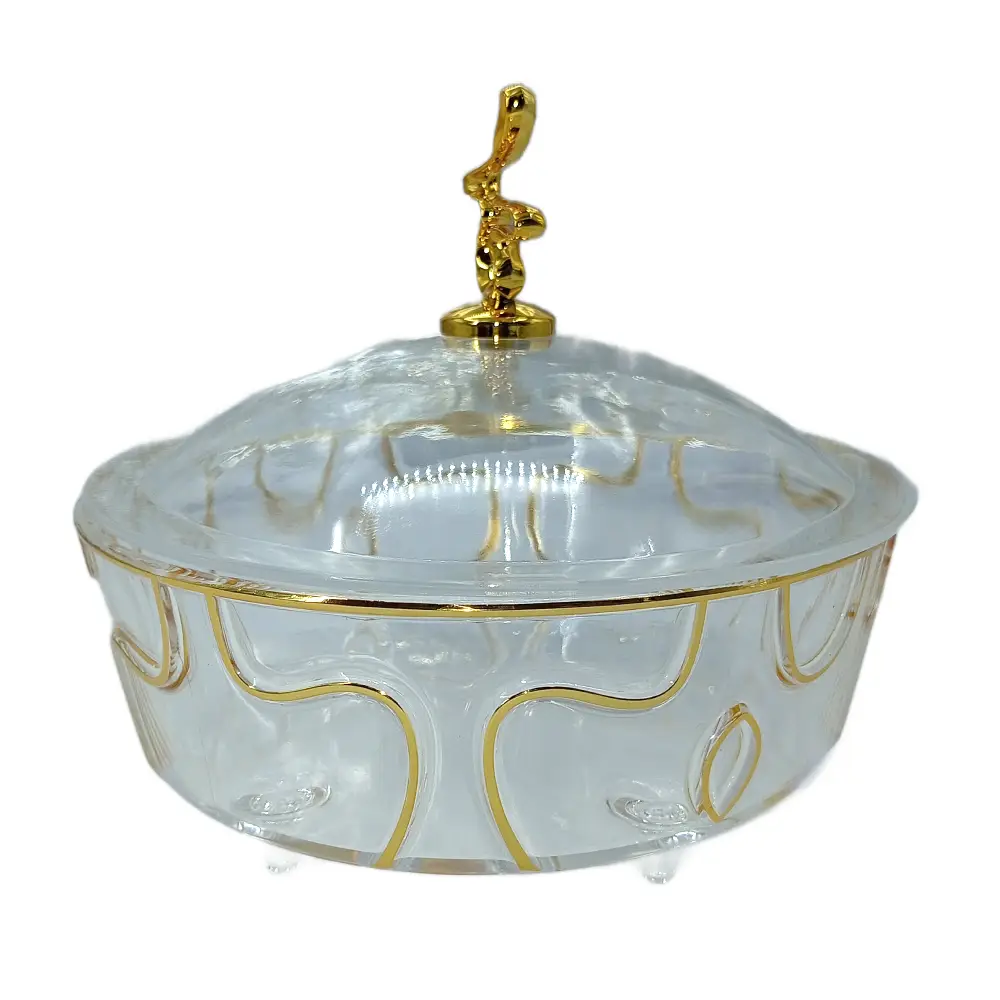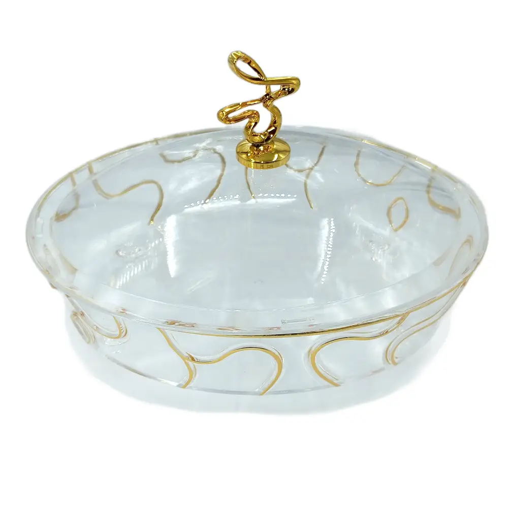 FURSAN OVAL ACRYLIC SERVING CANDY BOX WITH LID OVS-TPG It is an elegant container made from clear, high-quality materials such as acrylic, glass, or crystal. It is designed to beautifully display and serve candies while keeping them fresh and protected. The box often features a sleek, minimalist design with a matching lid, offering both functionality and sophistication. Key Features: Material: Clear acrylic, glass, or crystal. Design: Simple, elegant shape with smooth edges. Lid: Matching transparent lid to protect the contents. Size: Compact for personal use or larger for events. Uses: Ideal for weddings, gifts, or home decor. This box is perfect for presenting candies in a refined, luxury manner while keeping them easily accessible and protected.