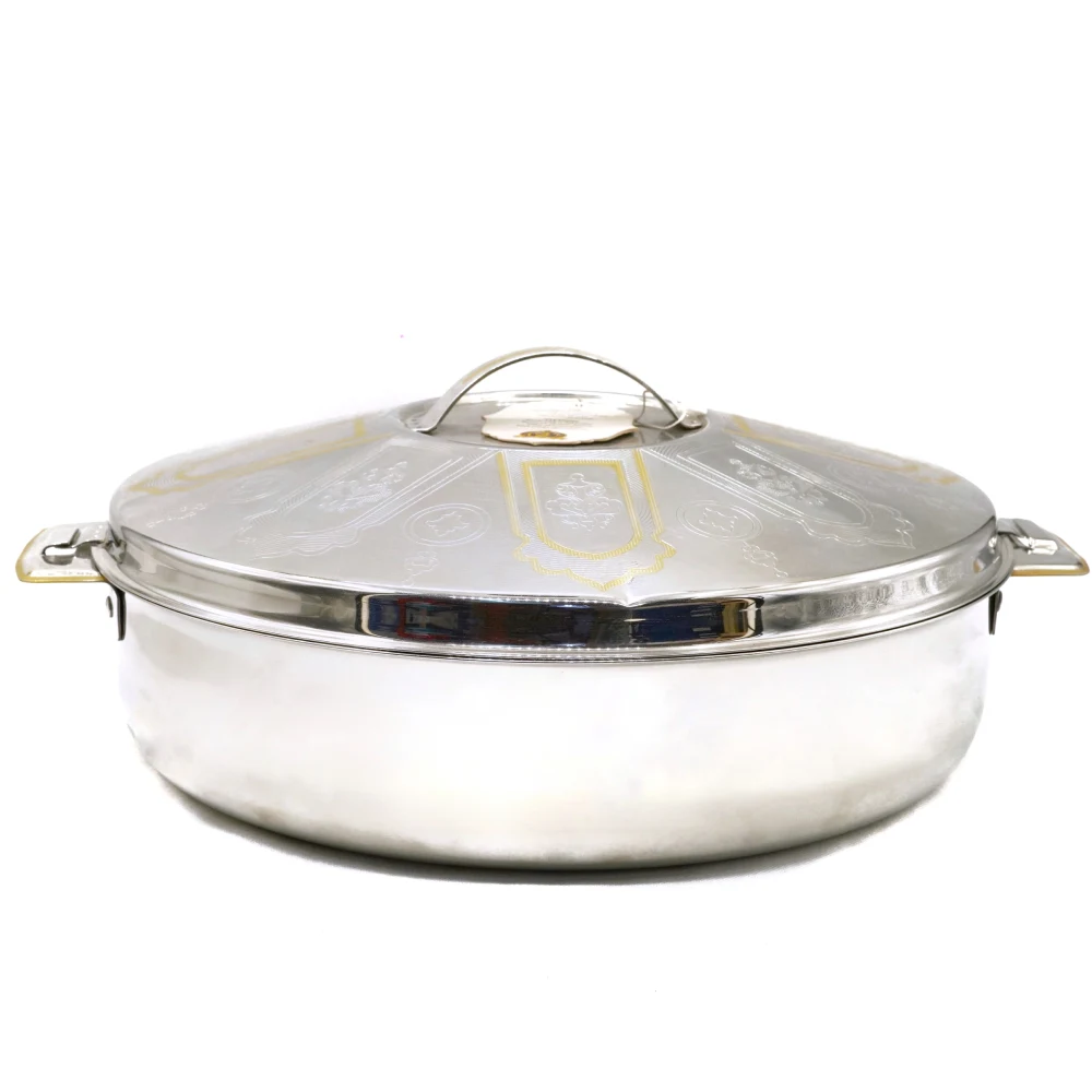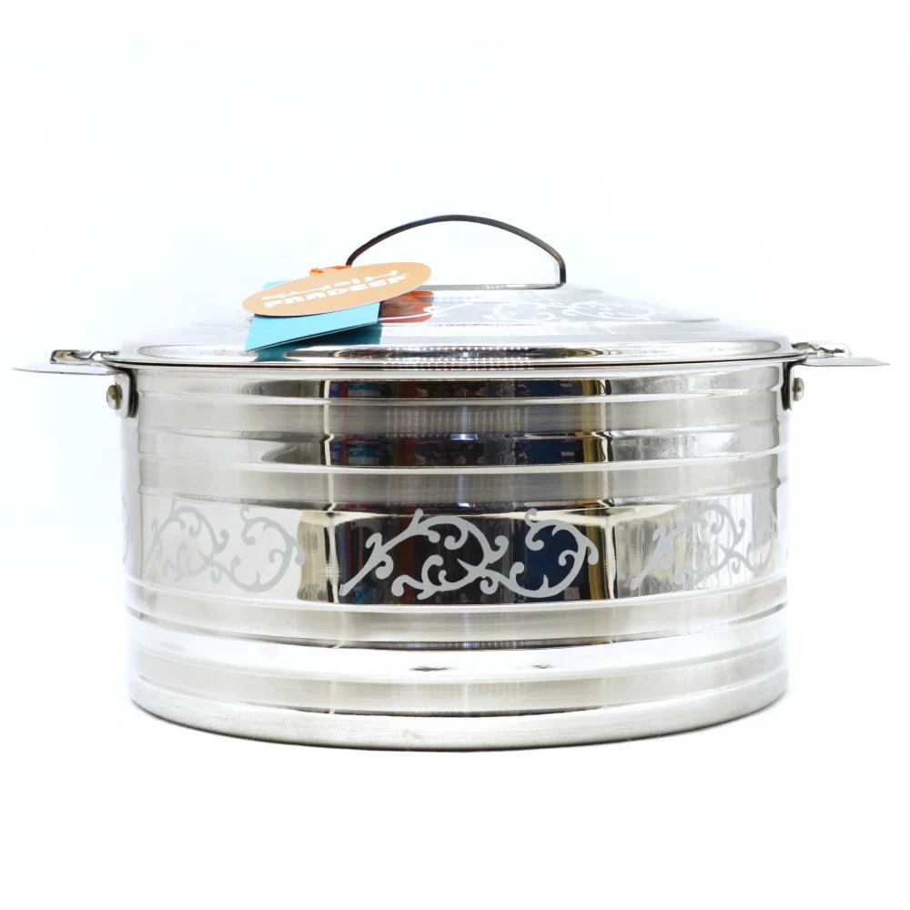 GRISHNA STAINLESS STEEL HOTPOT 10000 ML The Grishna Stainless Steel Hot Pot (10,000 ML) is designed for larger gatherings and cooking needs. Here are some key features typically associated with this type of hot pot: Large Capacity: At 10,000 ML, it can hold a significant amount of food, ideal for family meals or parties. Durable Stainless Steel: Made from high-quality stainless steel, it's resistant to rust and corrosion, ensuring longevity. Lid: Comes with a well-fitted lid to help retain heat and moisture, keeping your dishes warm for longer. Easy to Clean: Stainless steel is often dishwasher safe and easy to clean by hand. Stylish Design: Its sleek design complements various dining settings, making it both functional and attractive. Versatile Usage: Suitable for a variety of dishes, from stews and soups to curries and more. Sturdy Handles: Equipped with strong handles for easy transport and serving.