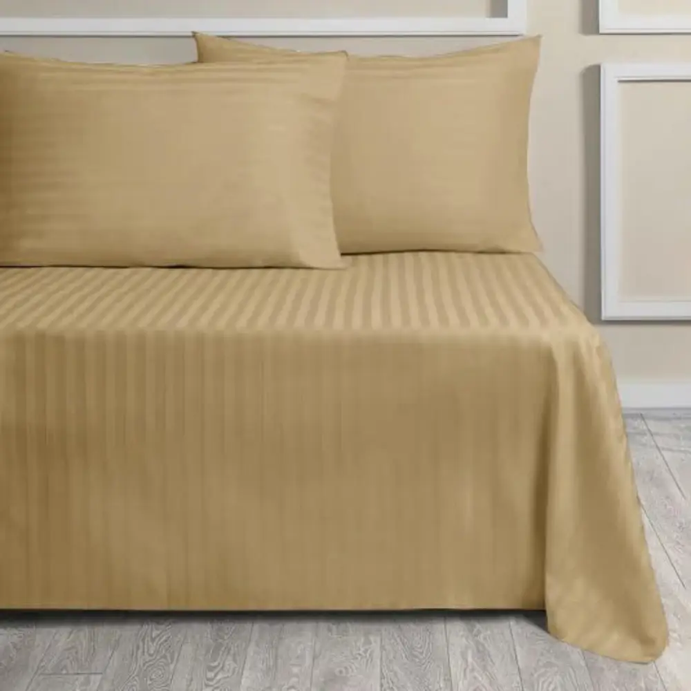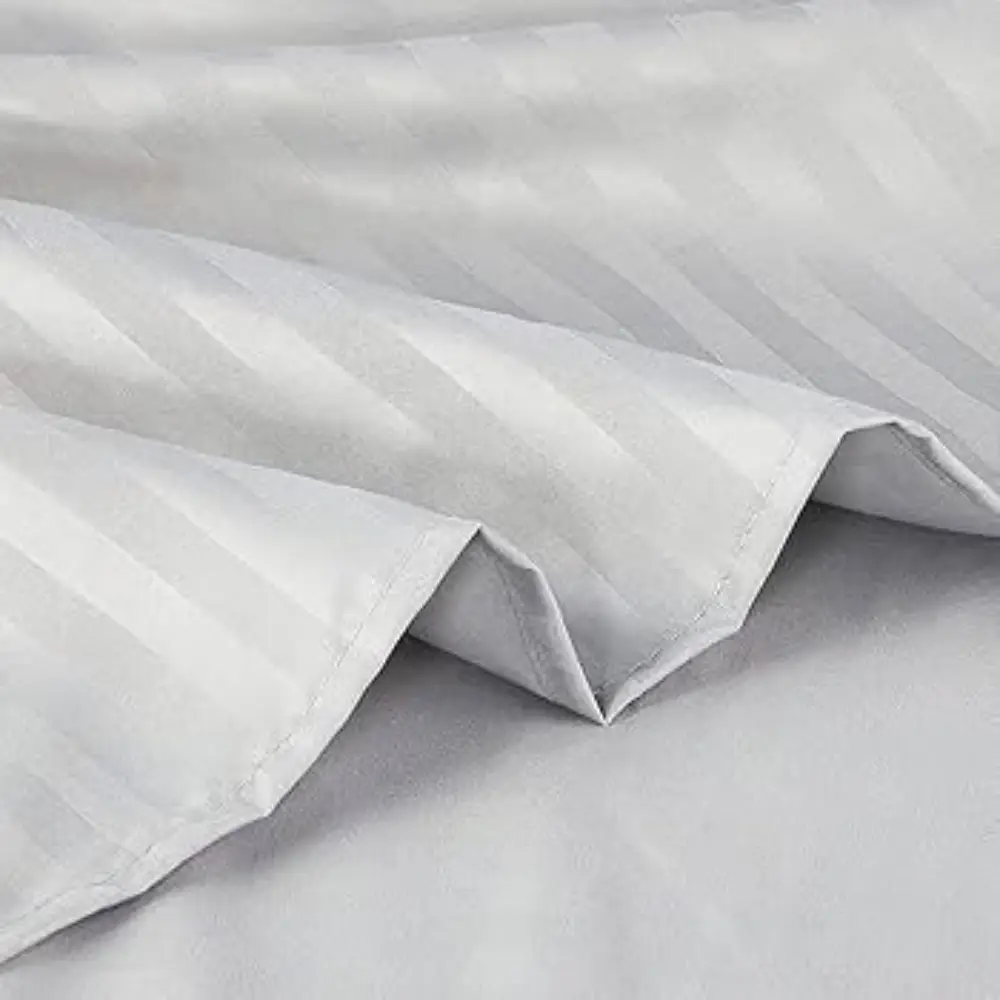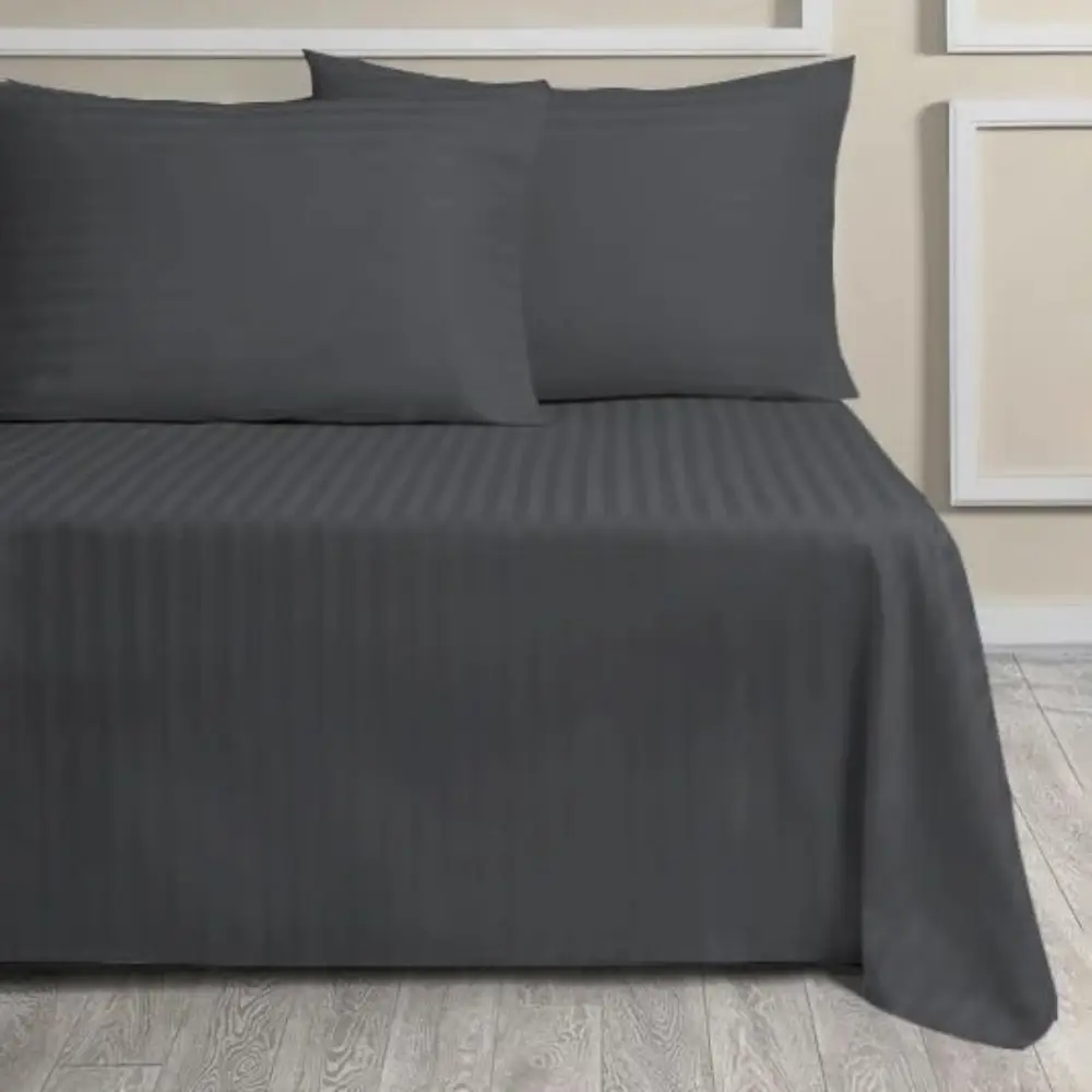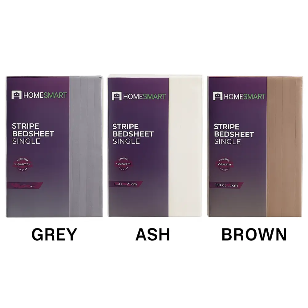 HOME SMART STRIPE BEDSHEET SINGLE 150 X 240 CM (PILLOW COVER NOT INCLUDED) - 1 PC Size: 150 cm (width) × 240 cm (length) – fits a single bed mattress typically with some overhang. Design: Stripe pattern – gives a clean, subtle look that works well in many bedrooms. Material & Use: Made to be smooth and comfortable for everyday sleep; covers your mattress and box spring (if applicable) in one piece. Color Options: Often available in neutral colors like white, ash (light grey), and grey – allowing easy matching with other bedding and room décor. Piece Count: Usually comes as a single sheet piece (not a full set with pillowcase). Purpose & Benefit: Provides a large, flat sleep surface without needing to tuck side sheets separately. Stripe design adds visual texture without overwhelming. Good for quick bed-making and a clean, streamlined bedroom look.
