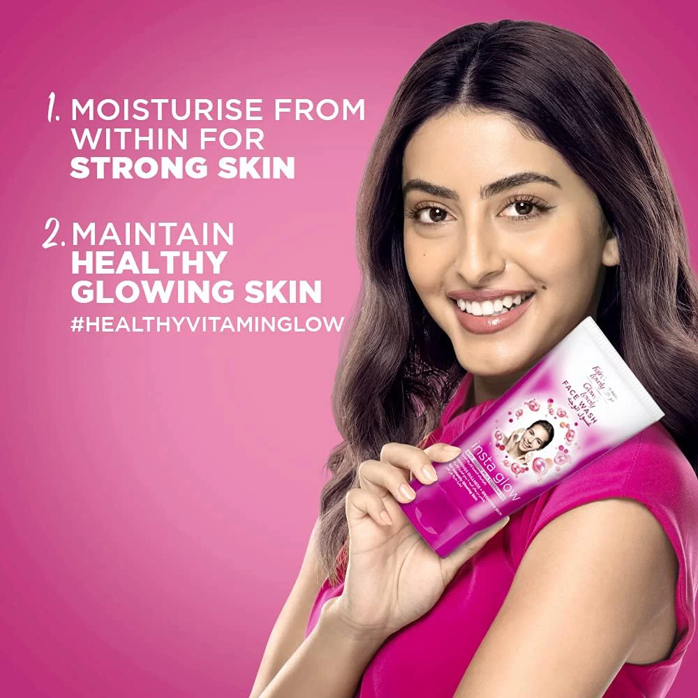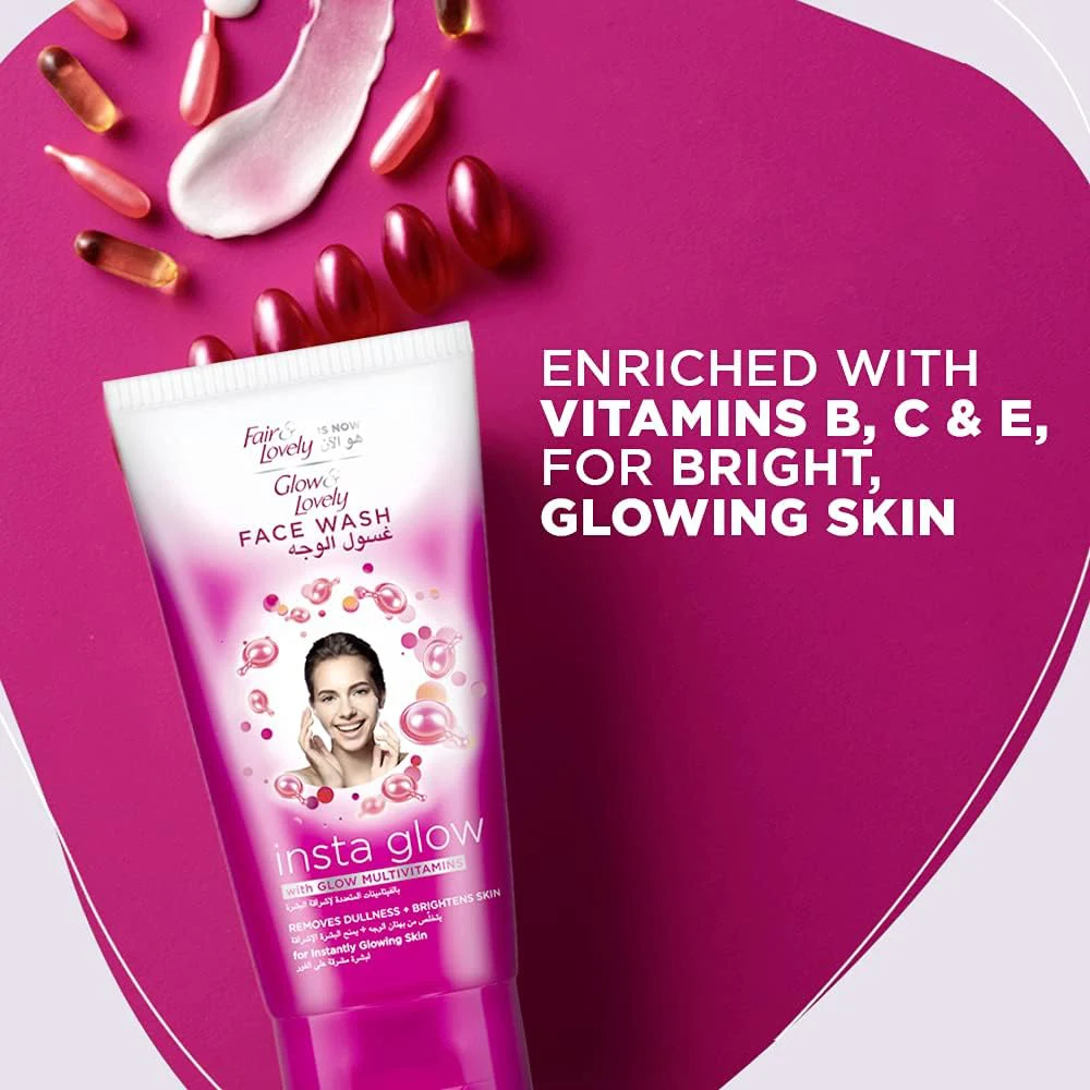GLOW & LOVELY INSTA GLOW FACE WASH WITH GLOW MULTIVITAMINS REMOVES DULLNESS + BRIGHTENS SKIN 150 G Glow Multivitamins: Infused with multivitamins that nourish the skin, enhancing its natural glow and radiance. Dullness Removal: Formulated to effectively cleanse away impurities and dead skin cells, helping to brighten the complexion and reduce dullness. Gentle Formula: Suitable for daily use, it cleanses without stripping the skin of its natural moisture. Application: Wet your face and apply a small amount of the face wash. Gently massage it into your skin in circular motions, then rinse thoroughly with water. Frequency: Recommended for daily use, both morning and evening, for best results. The 150 g packaging is practical and perfect for regular use, making it easy to incorporate into your skincare routine. Anyone looking to achieve brighter, more radiant skin while effectively cleansing their face. Suitable for all skin types, making it a versatile option for daily skincare.