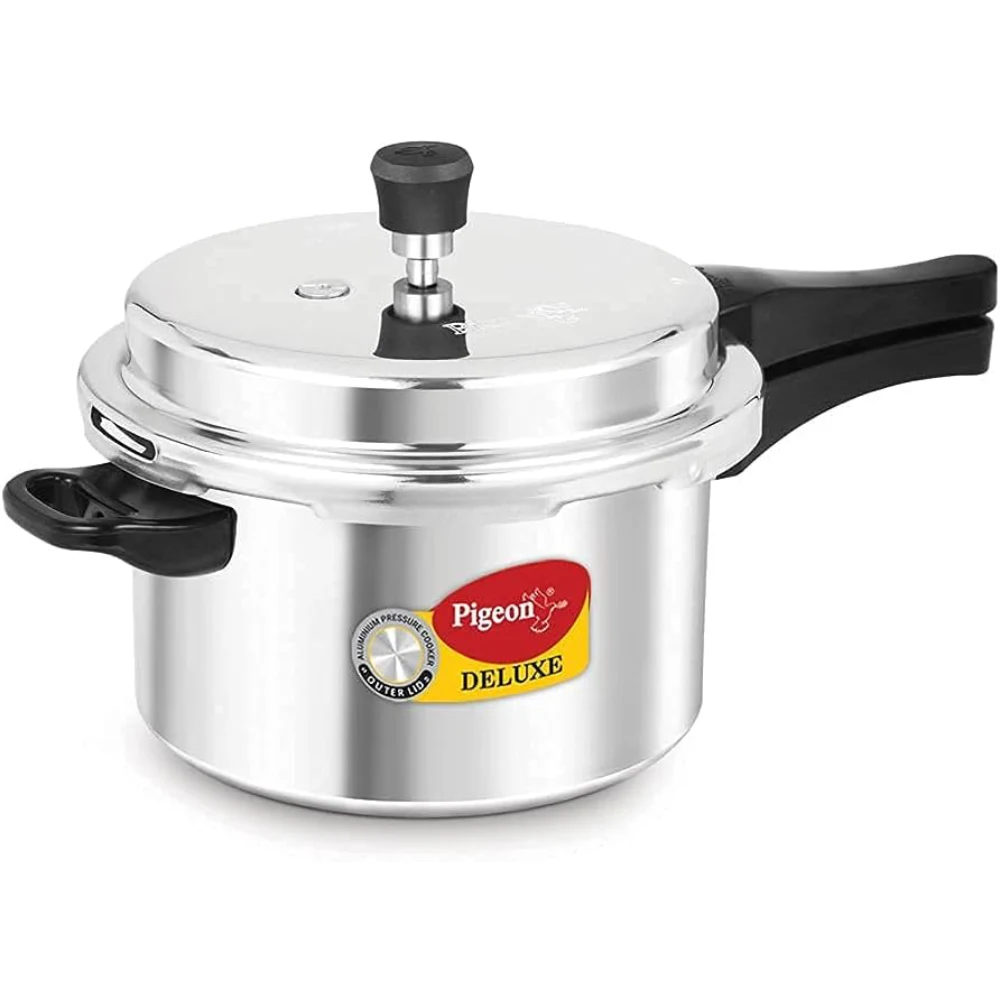 PIGEON DELUXE ALUMINIUM PRESSURE COOKER 3 L The Pigeon Deluxe Aluminium Pressure Cooker (3 L) is a compact and efficient kitchen essential, perfect for smaller households or for cooking side dishes. Here are some key features and details: Features Capacity: The 3-liter capacity is ideal for small families or for preparing quick meals. Material: Made from high-quality aluminum, which ensures even heat distribution and quick cooking. Safety Features: Typically includes a safety valve and sturdy handles for secure operation. Lightweight: Aluminium construction makes it easy to handle, even when filled. Easy to Clean: The smooth surface allows for easy cleaning and maintenance. Benefits Time-Saving: Reduces cooking time significantly compared to traditional cooking methods. Energy Efficient: Cooks food quickly, helping to save on energy costs. Versatile Cooking: Suitable for cooking rice, lentils, vegetables, and various other dishes.