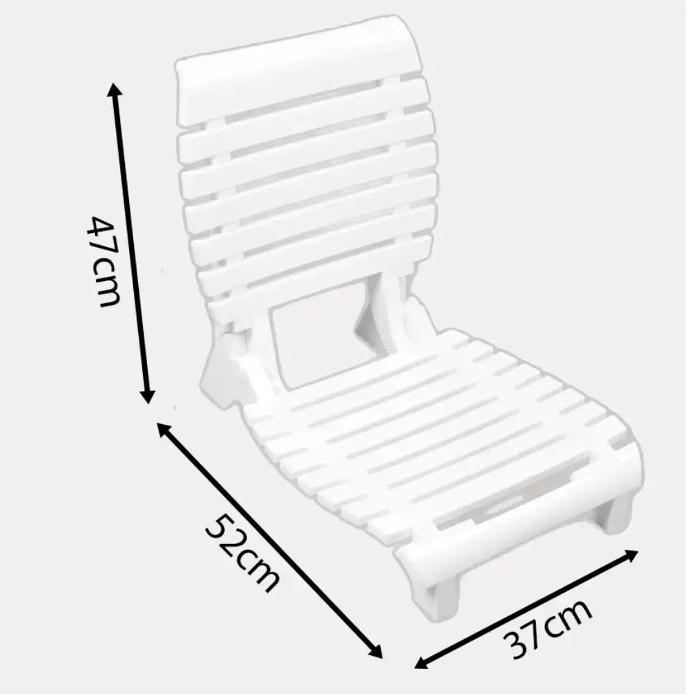 PLASTICNA FOLDING BEACH CHAIR I-CH-520F-WHT - WHITE Material: Likely made of durable plastic or resin, making it resistant to the elements such as moisture and saltwater, which is ideal for beach environments. Foldable: Easy to fold for convenient transport and storage. Size: The dimensions you provided (47 cm width x 52 cm depth x 37 cm height) indicate it is a relatively small and portable chair, comfortable for casual sitting but not oversized. Width (47 cm): The width provides a moderate sitting space. Depth (52 cm): Depth ensures comfort for the legs when seated. Height (37 cm): Likely refers to the seat height, suggesting a low-sitting position typical for a beach chair. Usage: Great for beach outings, picnics, or outdoor events where portability and ease of use are priorities. Designed to withstand exposure to sand, saltwater, and sun, it is likely to have UV-resistant materials to prevent fading and cracking.