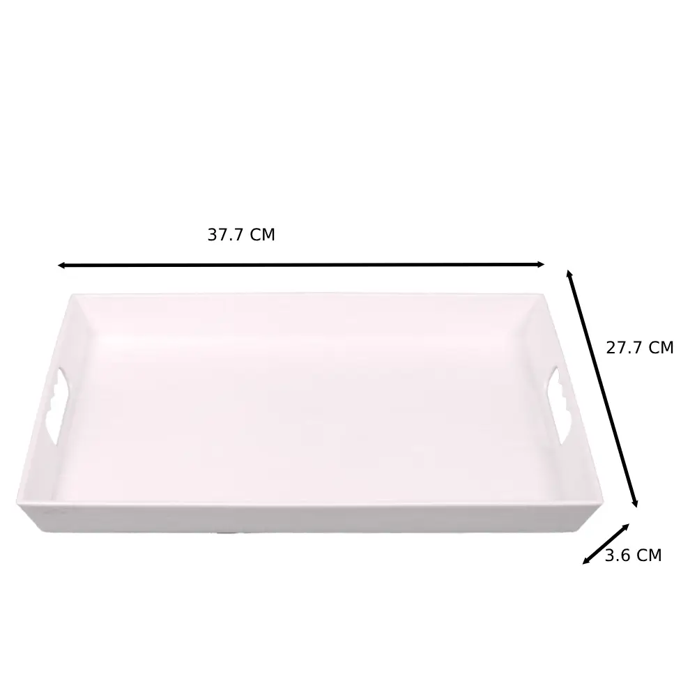 PLASTICNA LEATHER TEXTURE PLASTIC TRAY SMALL - P.WHITE A Plastic Leather Texture Plastic Tray (Small) with the dimensions: Length (L): 377mm Width (W): 277mm Height (H): 36mm This tray would have a plastic construction with a leather-like texture, giving it an elegant and sophisticated look. The dimensions make it ideal for smaller serving tasks or organizing items in a stylish way. Here's a breakdown of what to expect: Key Features: Material: Plastic with a leather texture finish. The texture simulates leather’s tactile quality while maintaining the lightweight and easy-to-clean benefits of plastic. Color: Likely in neutral tones (such as beige, brown, or black), which enhance its leather-like appearance and offer versatility for various décor styles. Size: The tray's 377mm length and 277mm width provide a functional size for smaller servings, such as tea or coffee cups, or for organizing smaller items like keys or accessories.