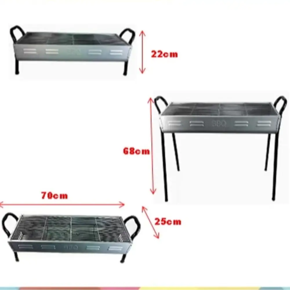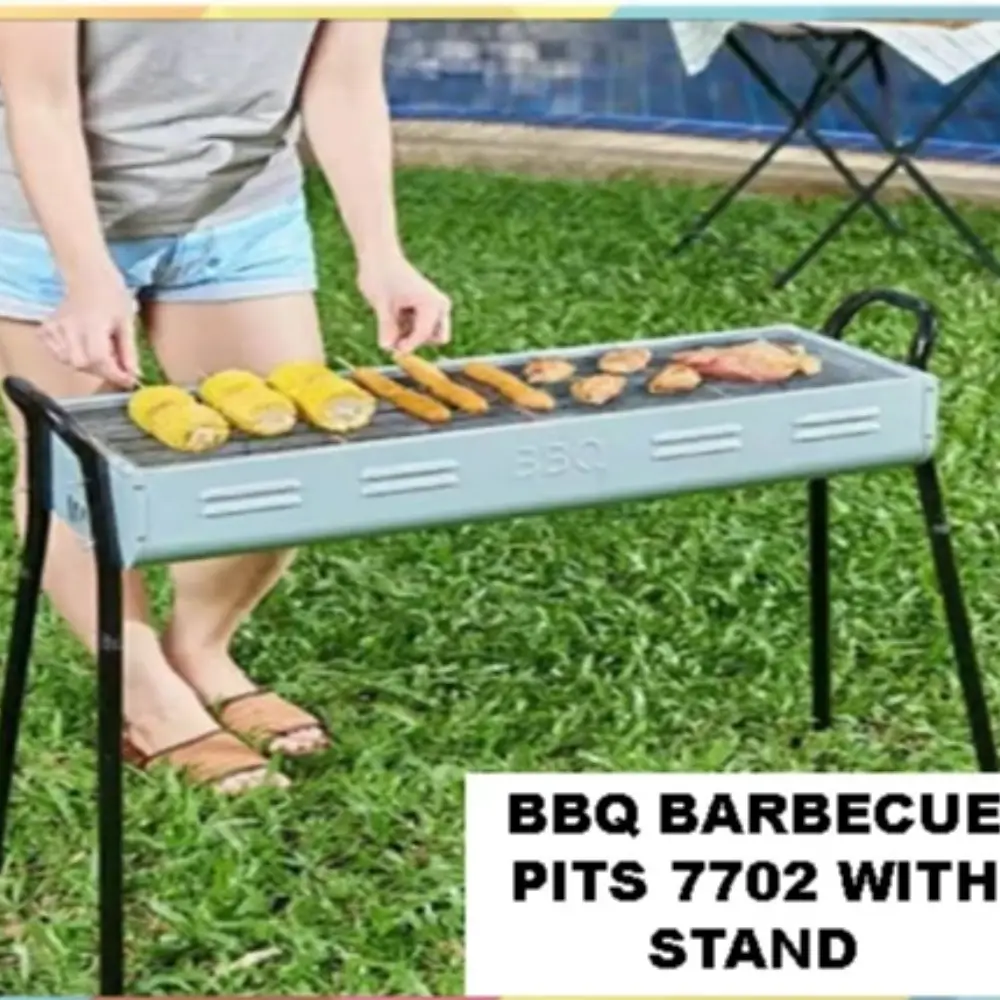 PORTABLE ALUMINIUM BBQ BARBEQUE GRILL PITS HZA-7702 70 X 25 X 68 CM The Portable Aluminium BBQ Barbecue Grill Pit with dimensions 70 x 25 x 68 cm is a compact and convenient grilling solution for outdoor activities. Here's a simple breakdown of its features: Specifications: Size: 70 cm (L) x 25 cm (W) x 68 cm (H), offering enough space for grilling several items at once. Material: Made from aluminium, which is lightweight, rust-resistant, and durable, making it easy to transport and clean. Portable: The lightweight aluminium construction allows for easy transportation, making it perfect for camping, picnics, or tailgating. Grill Surface: Offers ample cooking space for grilling food like burgers, sausages, vegetables, or fish. Easy Setup: Simple to assemble and set up for quick grilling at outdoor events.