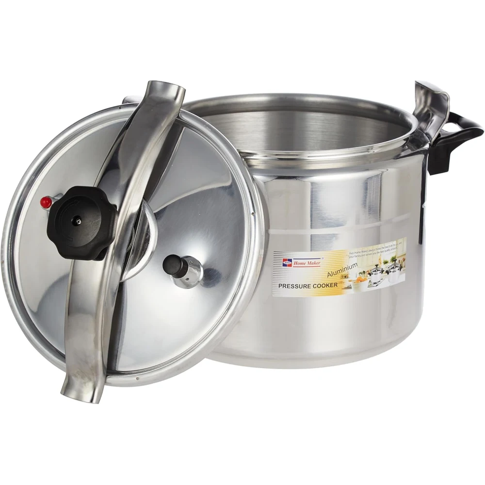 AVCI HOME MAKER ALUMINIUM PRESSURE COOKER 20 L Material: Made of aluminium, which is lightweight and conducts heat well. Capacity: 20 liters, ideal for cooking large quantities of food, such as for big families or gatherings. Pressure Cooking: Cooks food faster by using high pressure, reducing cooking time by up to 70%. Safety: Includes a locking lid and safety valve for secure cooking. Benefits: Fast Cooking: Ideal for preparing large meals quickly. Energy Efficient: Saves energy by cooking food faster. Versatile: Suitable for soups, stews, rice, and meats. Perfect for those who need to cook large batches efficiently!