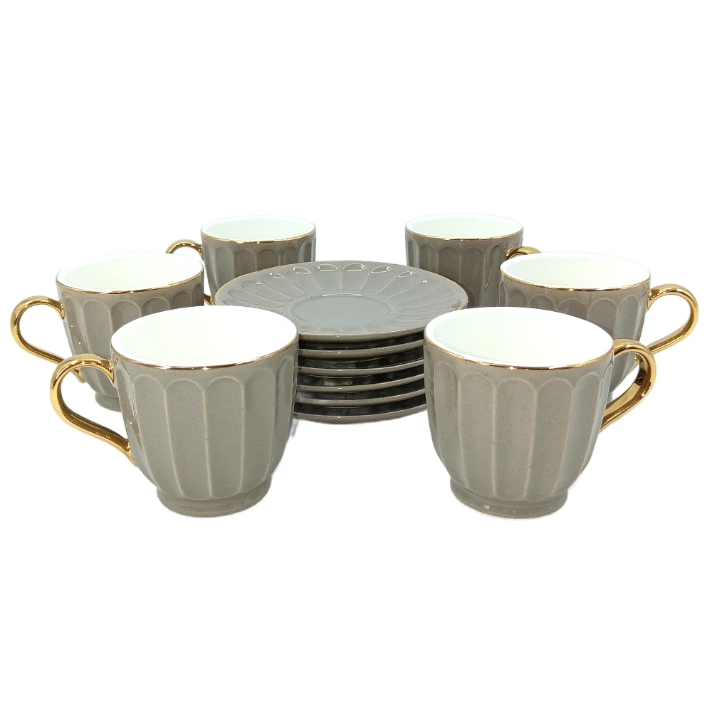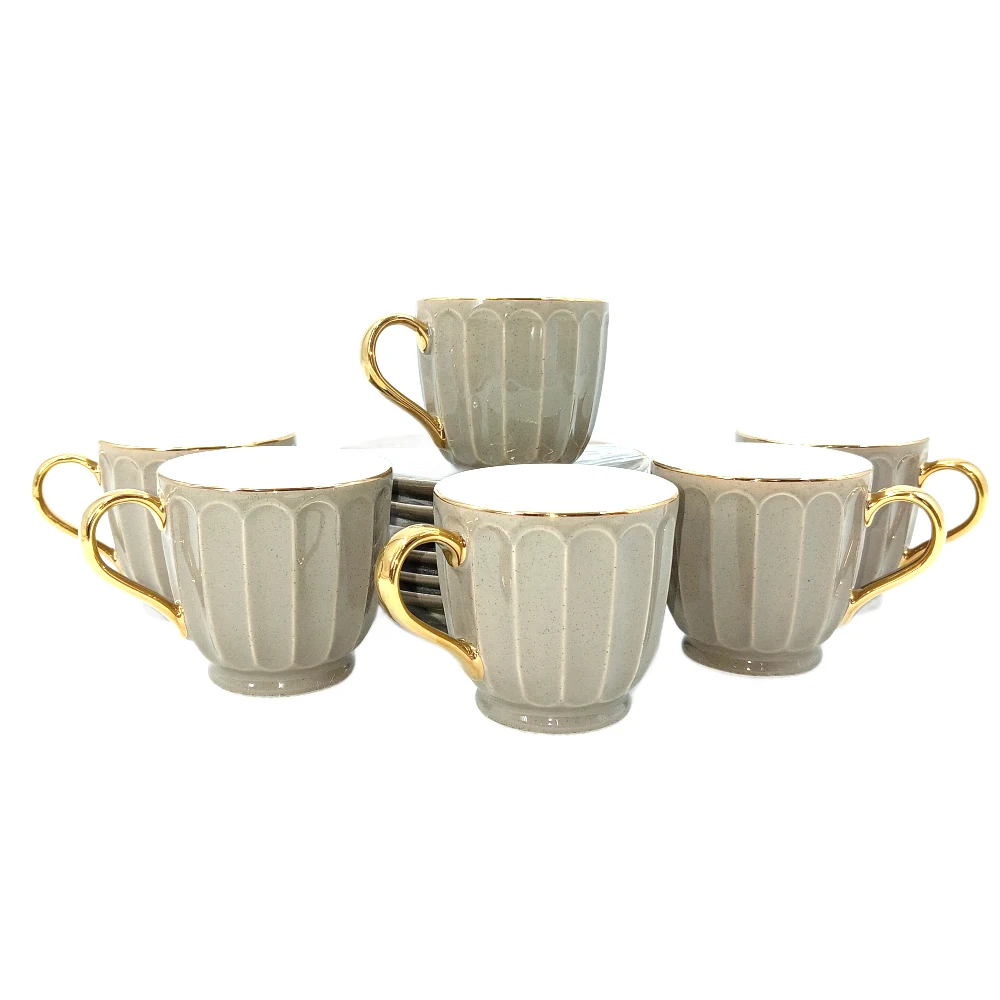 ROSE CUP & SAUCER 12 PIECES Design: Each cup and saucer features a delicate rose pattern, often in soft pastel colors or vibrant shades, depending on the style. Material: These sets can be made from various materials, including porcelain, bone china, or ceramic, which gives them a classic and elegant look. Size: Cups typically hold around 6 to 8 ounces, making them suitable for tea, coffee, or desserts. Occasions: Perfect for afternoon tea, brunches, or special gatherings, they add a lovely touch to any table setting. Care: Most sets are dishwasher and microwave safe, but it’s always good to check the care instructions to maintain their beauty.