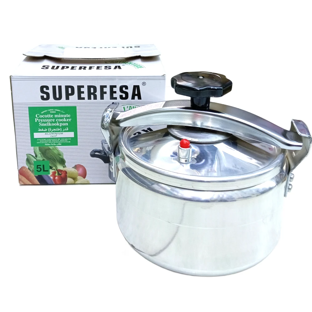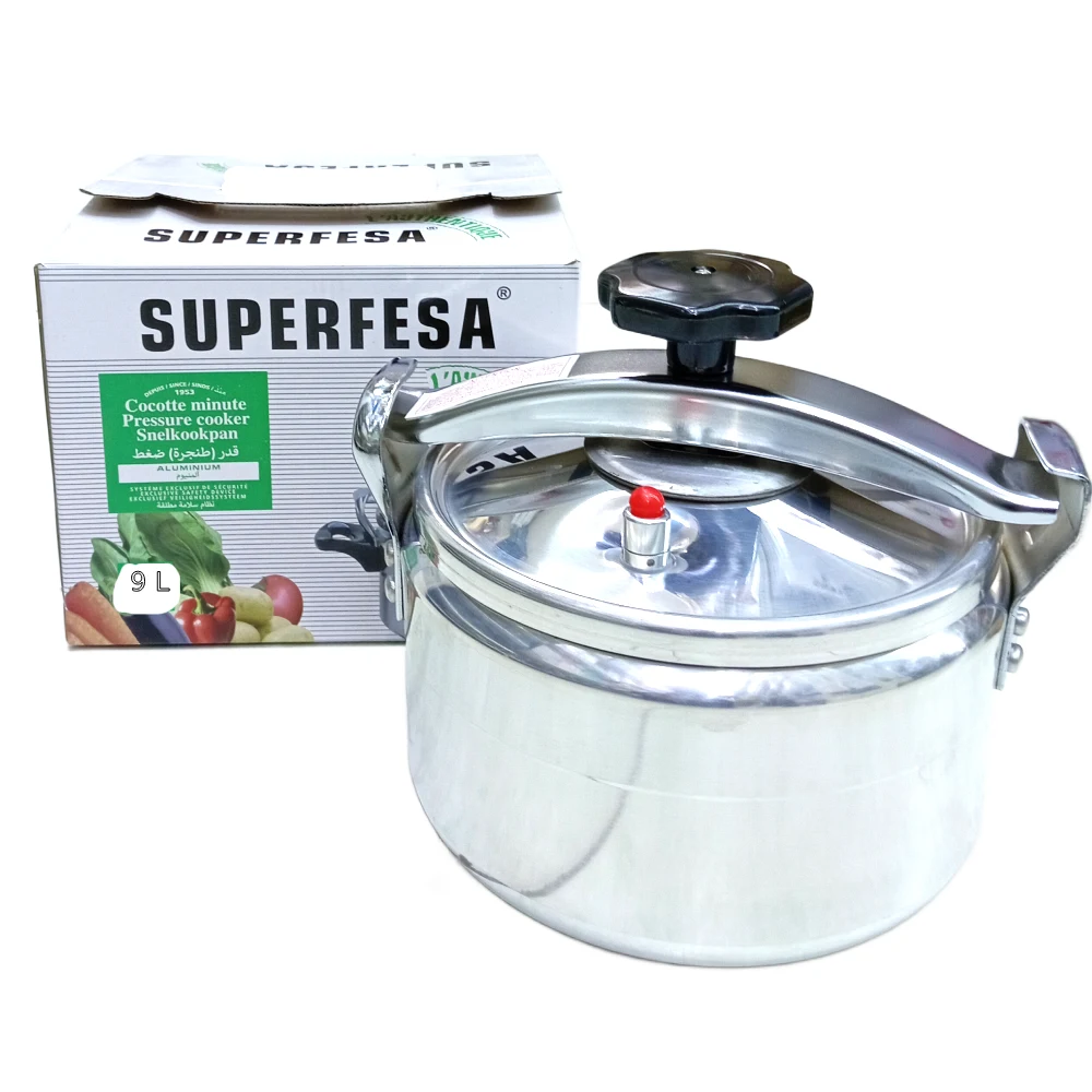 SUPER FESA ALUMINIUM PRESSURE COOKER 15 L Material: Made from high-quality aluminum, which is lightweight and conducts heat efficiently. Capacity: 15 liters of cooking capacity, making it ideal for large families, catering, or cooking in bulk. Design: Pressure cooking lid with a safety valve for controlled cooking under pressure. Ergonomic handles for safe and easy handling. Fast Cooking: Speeds up cooking by using high pressure to reduce cooking time for beans, stews, rice, and more. Safety Features: Equipped with multiple safety valves to ensure safe pressure release. Versatility: Suitable for a variety of dishes such as curries, soups, rice, and meats, ideal for quick cooking. Advantages: Large capacity for cooking big batches. Energy-efficient due to faster cooking times. Durable and long-lasting aluminum build. Simple to use and clean.