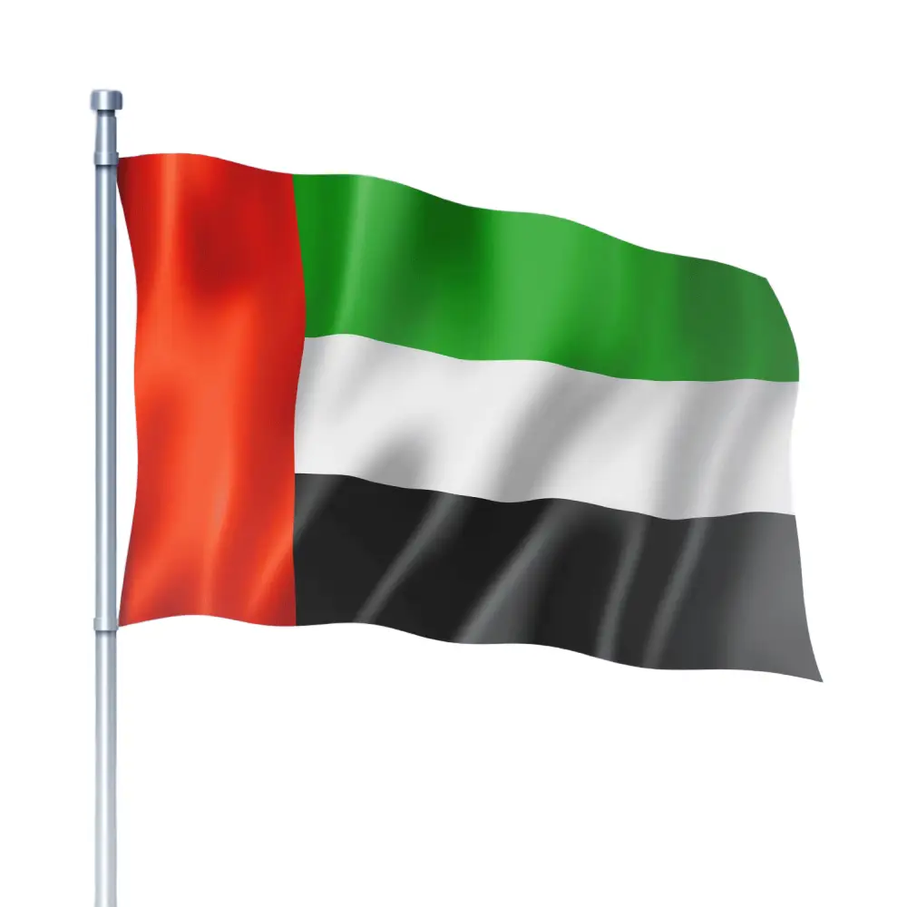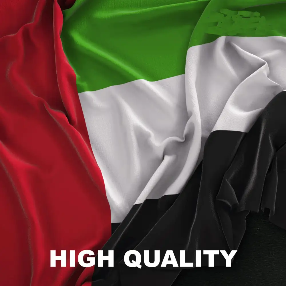 UAE FLAG WITH GOLD LACE 1.5 M The UAE Flag with Design (1.5 meters) is a flag specifically created to represent the United Arab Emirates. It features the official UAE flag design and is typically used for National Day celebrations or to show national pride. Key Features: Size: The flag is 1.5 meters in length, making it a good size for flagpoles, outdoor displays, or decorating homes and offices. Design: The flag follows the official UAE national flag design: Red: A vertical red stripe on the left side, symbolizing the unity and strength of the UAE. Green: Represents the country’s land, prosperity, and growth. White: Symbolizes peace, neutrality, and harmony. Black: Represents the strength, resolve, and determination of the nation. Material: Typically made from polyester, which is durable and weather-resistant, making it suitable for both indoor and outdoor use.