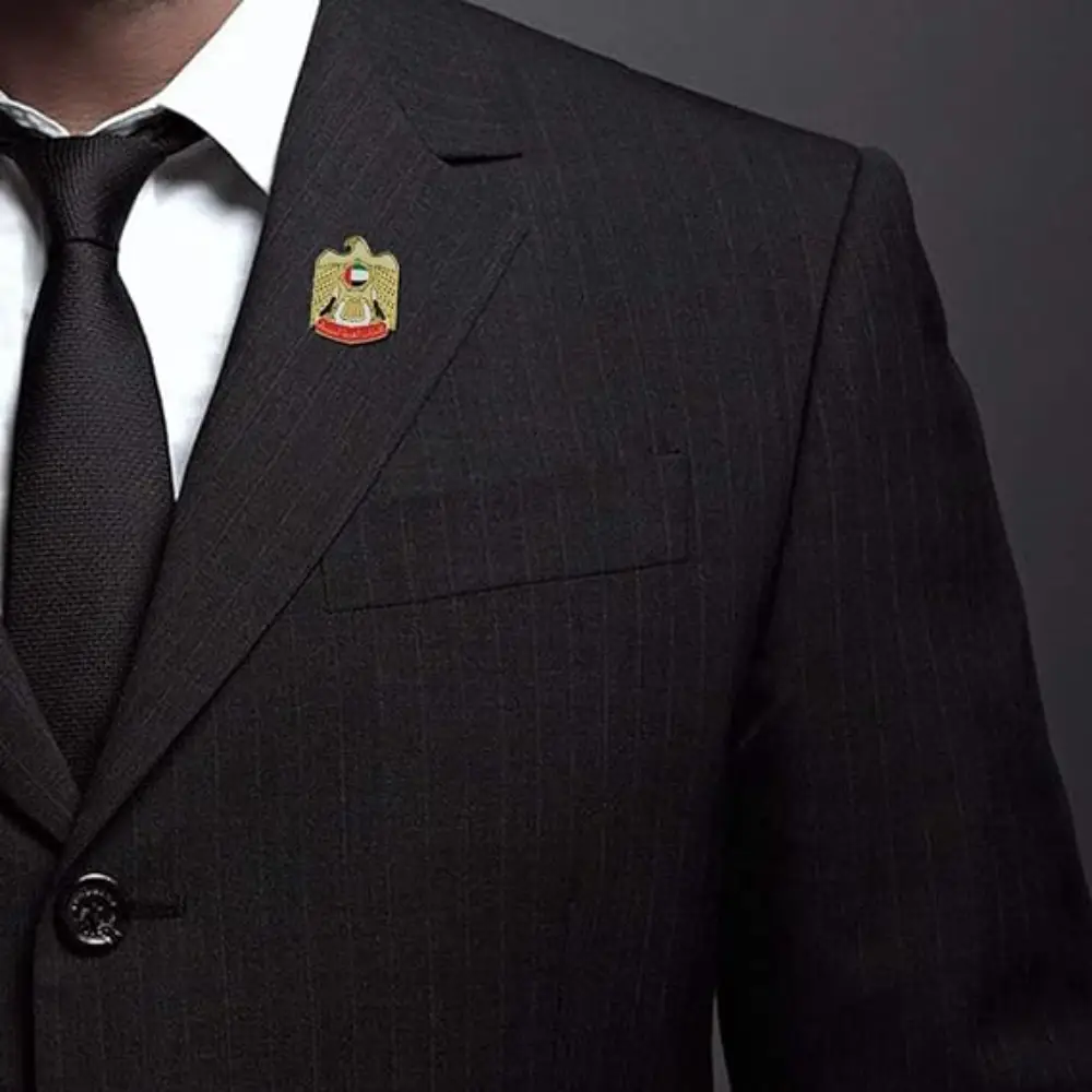 UAE NATIONAL DAY GOLD/ WHITE FALCON BADGE W/ MAGNET Design: A small badge shaped like the UAE falcon, symbolizing power, heritage, and national pride. Color Options: Gold Falcon: Represents strength, honor, and unity. White Falcon: Symbolizes peace, purity, and pride. Size: Compact size — approximately 2 cm wide and 3 cm high, ideal for wearing on clothes or scarves. Material: Made of metal alloy or enameled coating with a glossy, polished finish. Attachment: Features a strong magnet on the back (instead of a pin), making it easy to attach and remove without damaging fabric. Use: Commonly worn during UAE National Day celebrations, school events, or patriotic gatherings. Symbolism: The falcon is a national emblem of the UAE, representing courage, heritage, and leadership.