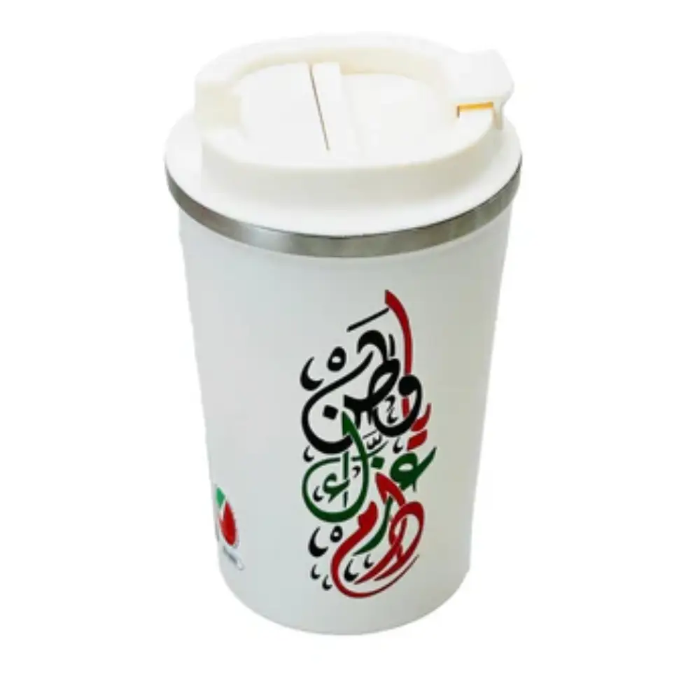UAE NATIONAL DAY VACUUM TUMBLER 400 ML-1 PC This is a 400 ml insulated tumbler designed with UAE National Day themes. It keeps drinks hot or cold for longer because of its vacuum-sealed double-wall design. The tumbler is durable, easy to carry, and comes as a single piece.