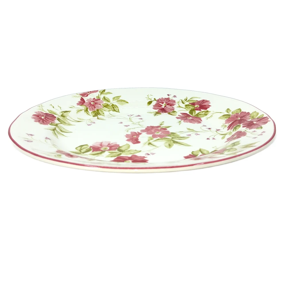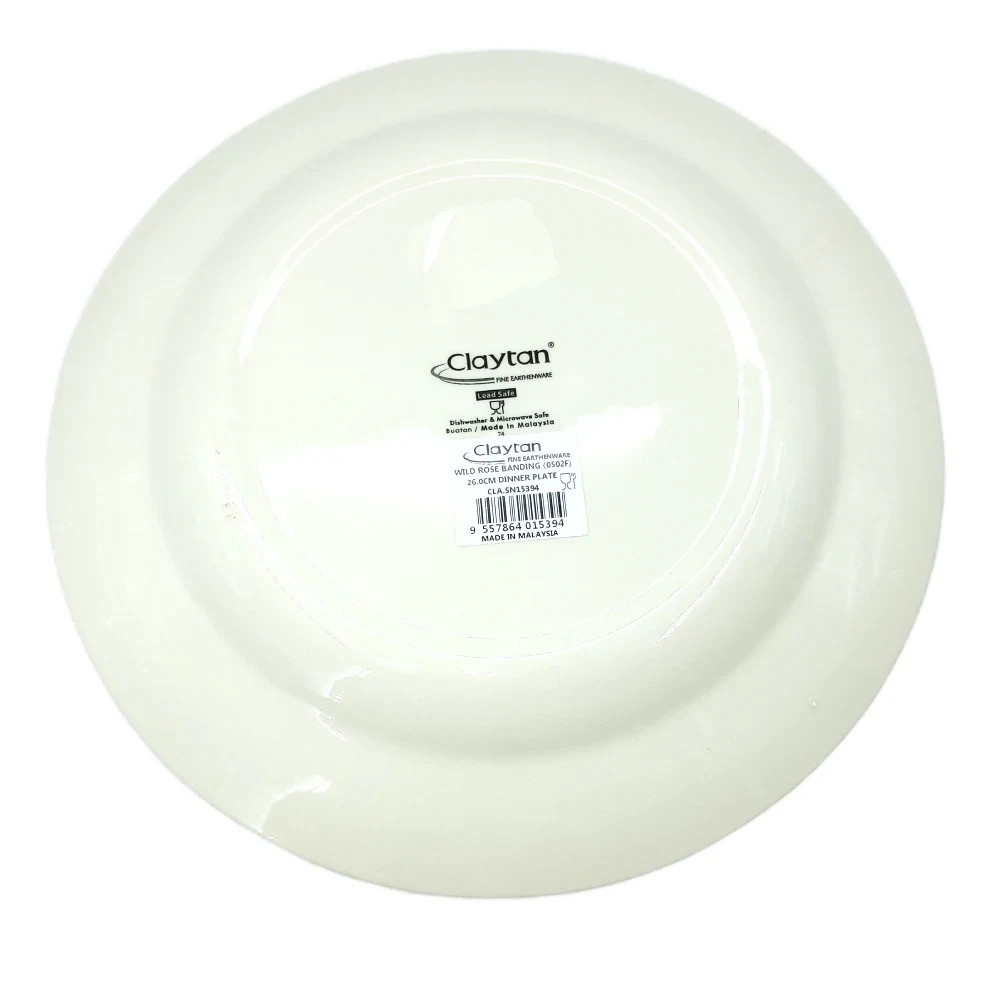 CLAYTAN WILD ROSE BANDING DINNER PLATE 26 CM The Claytan Wild Rose Banding Dinner Plate (26 cm) is an elegant dinner plate with the following features: Features: Size: 26 cm, ideal for main dishes. Design: Features a beautiful Wild Rose pattern with a decorative band. Material: Durable ceramic, perfect for both everyday use and special occasions. Cleaning Tips: Dishwasher Safe: You can safely clean it in the dishwasher, but ensure it’s not overcrowded to avoid scratches. Hand Wash: For best results, wash by hand using mild dish soap and a soft sponge to protect the design and surface. Avoid Abrasives: Avoid using abrasive cleaners or harsh scrubbers to prevent damage to the ceramic or pattern. Dry Immediately: After washing, dry with a soft cloth to avoid water spots. This plate is easy to maintain and adds a lovely touch to your table setting.