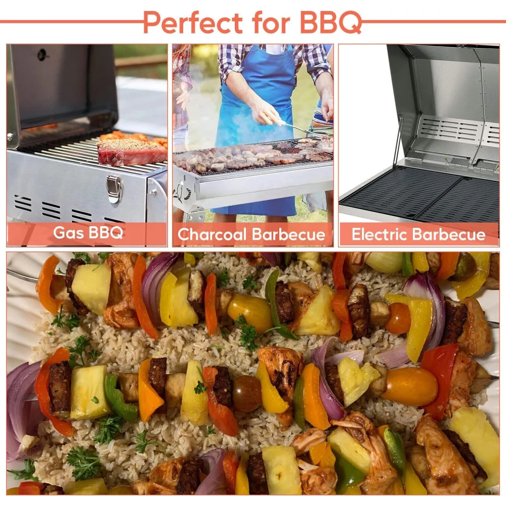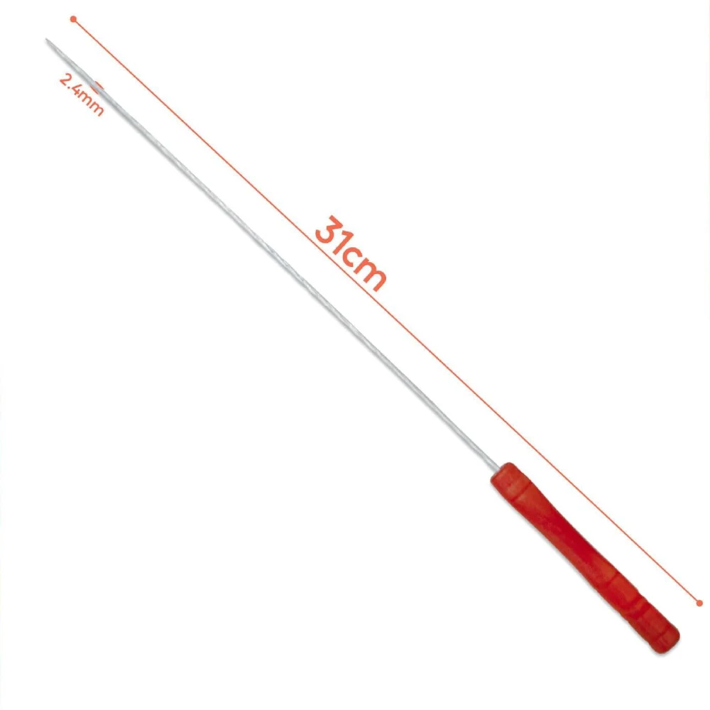 XINWAN STAINLESS STEEL KEBAB LONG BARBEQUE SKEWERS WITH RED WOODEN HANDLE 31 CM Stainless Steel Construction: Made from stainless steel, these skewers are built to withstand high heat without rusting, bending, or warping. They’re also very easy to clean after use—just rinse or put them in the dishwasher. Red Wooden Handles: The wooden handles are designed to provide a safe, comfortable grip, even when the skewers are hot from the grill. The red color adds a stylish touch, making them stand out in your grilling tools collection. 30 cm Length: The 30 cm size is a good length for most grilling situations, offering enough space to load several pieces of meat or vegetables without crowding. It also ensures that your hands are far enough from the hot grill. Flat Design: The skewers are likely flat, which prevents food from rotating while cooking, ensuring even grilling. This is especially important for ensuring that your kebabs cook perfectly on all sides